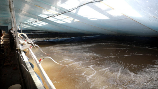 一是池塘工程化循環水養殖模式,即將主養品種置于流水槽中,槽外的大池塘用于魚糞收集和水處理,包括養魚流水槽、魚糞殘餌集污裝置、推水增氧裝備、起魚吊裝設備、魚菜共生裝置、導流壩等。這種模式不占地,適合連片且有一定規模的池塘,基本可以實現污染物達標排放,養殖用藥減少90%。