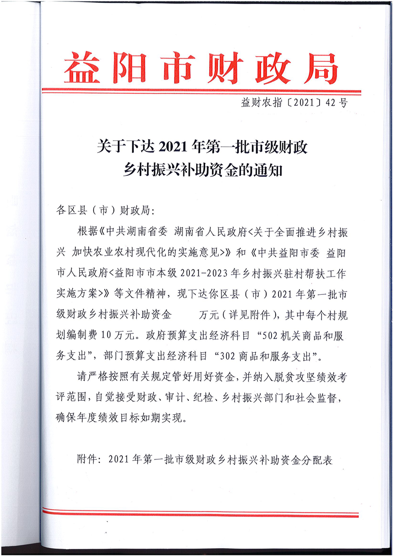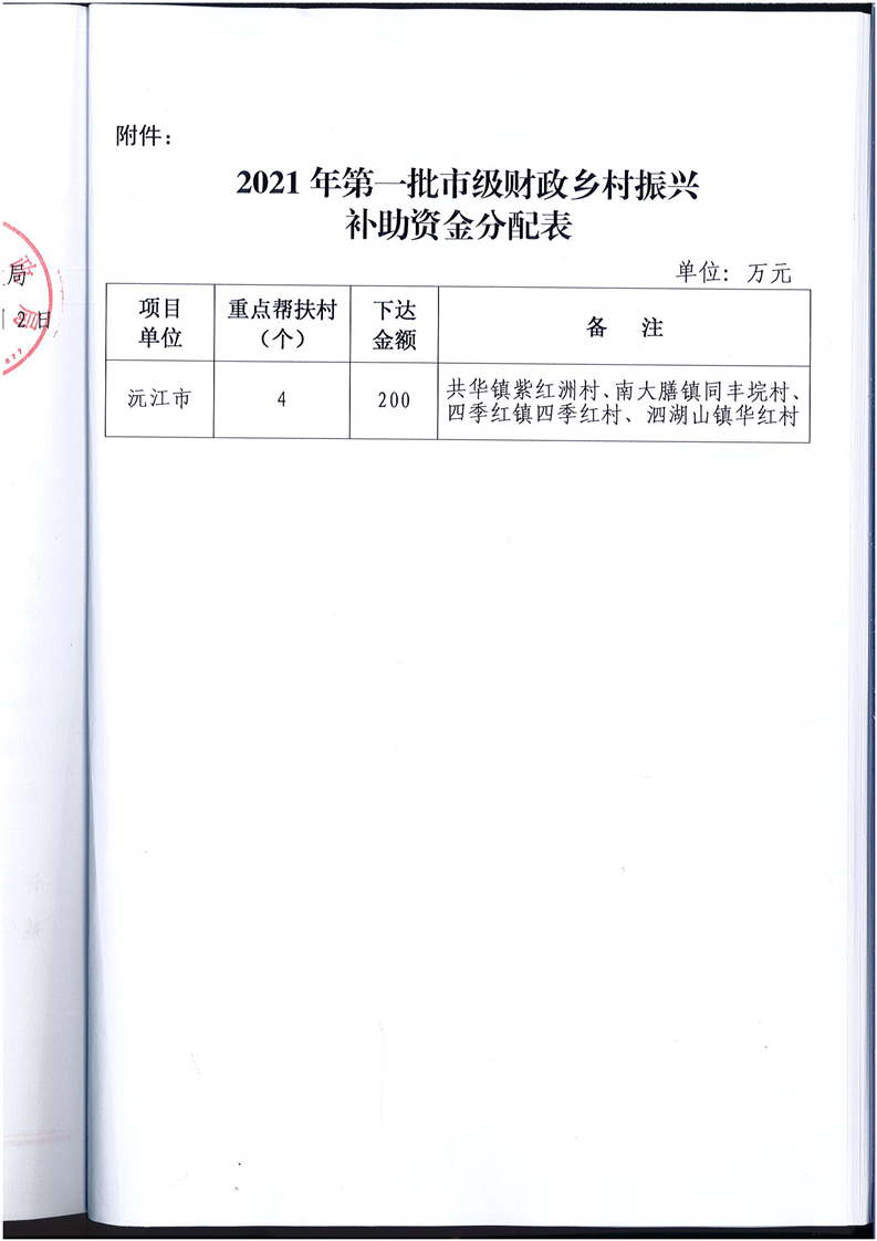 關(guān)于下達(dá)2021年第一批市級財政鄉(xiāng)村振興補(bǔ)助資金的通知