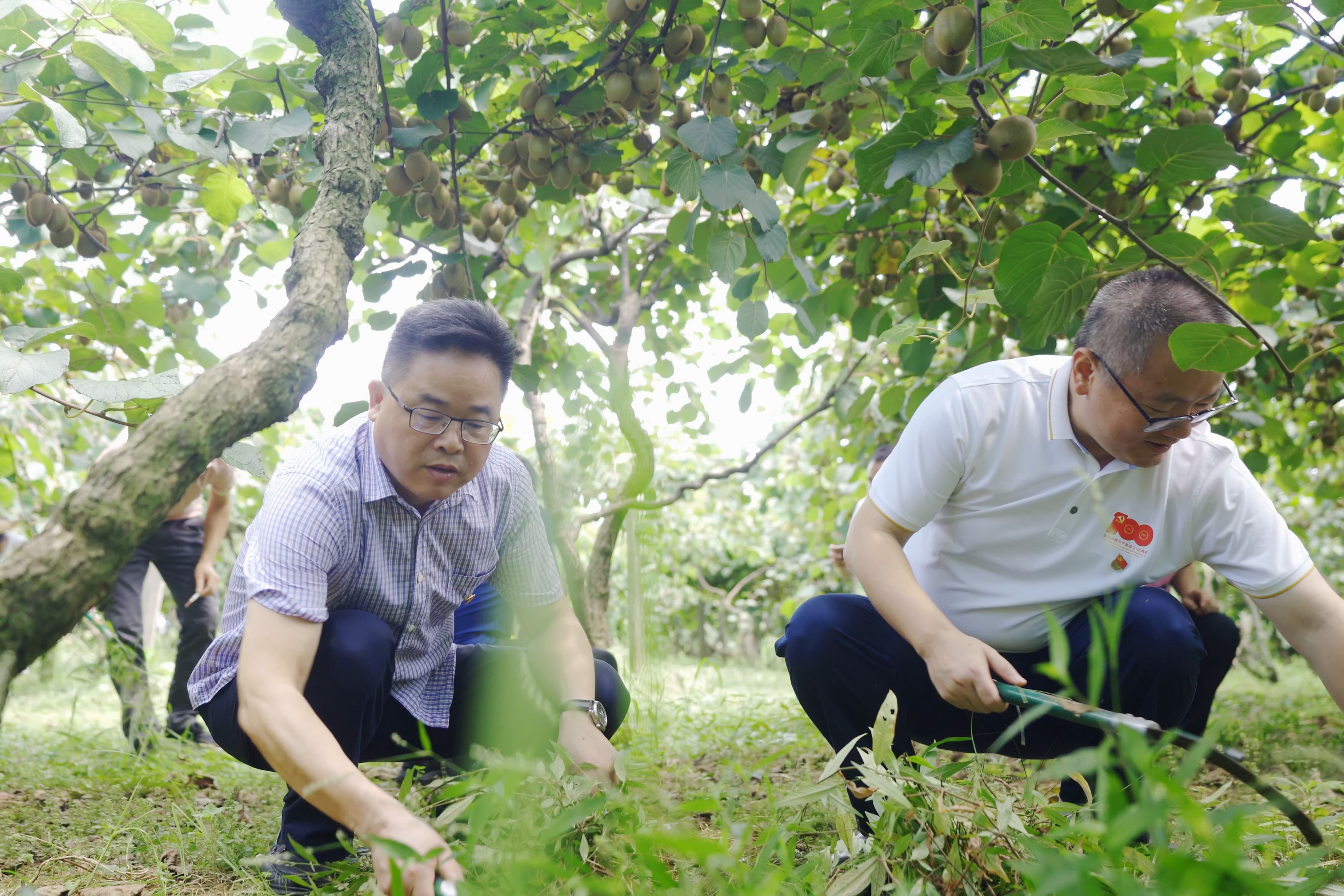 勞動中,黨員干部們紛紛拿好工具,對先鋒優質獼猴桃基地的雜草進行清除。他們分工協作,有的拔草,有的負責清理,充分發揚不怕臟、不怕累的精神,雖然天氣炎熱,大家卻干勁十足。