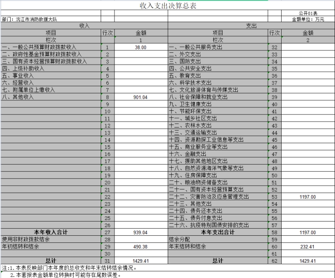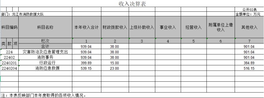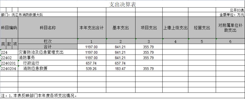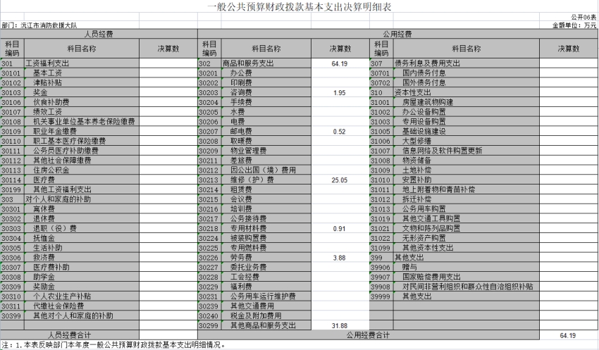 第二部分 益陽市沅江消防救援大隊2021年度部門決算表