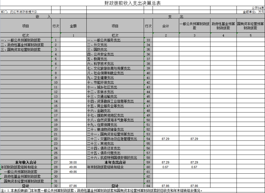 四、財政撥款收入支出決算總表