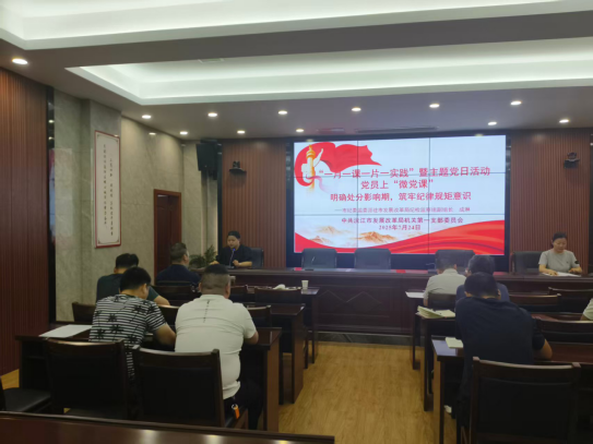 7月24日上午10時,機關第一支部在局機關二樓會議室隆重開展七月主題黨日暨“一月一課一片一實踐”活動。本次活動由支部書記劉碧主持,全體黨員積極參與,通過一系列豐富多樣的環節,強化了黨員的黨性修養,筑牢了紀律規矩意識。
