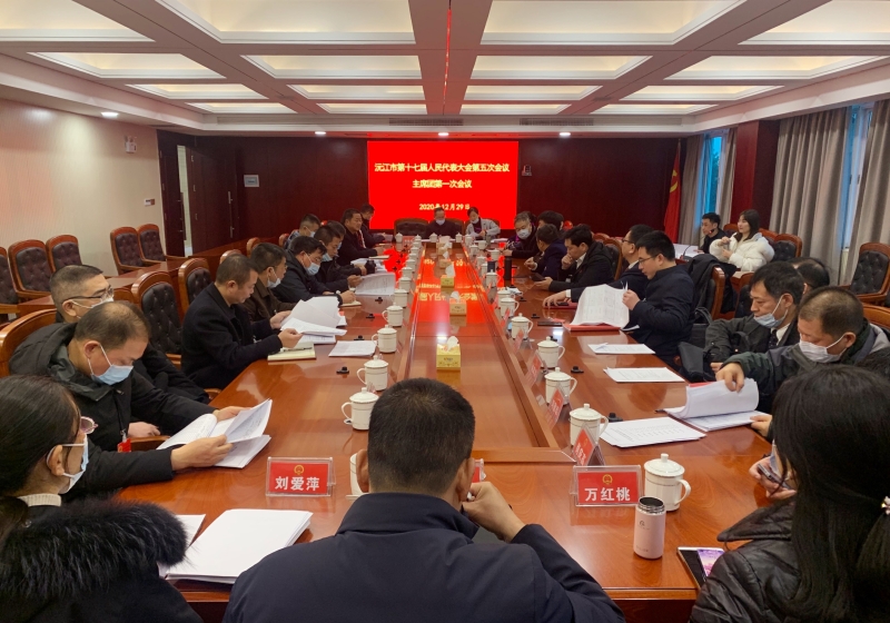 12月29日下午,沅江市第十七屆人民代表大會第五次會議召開主席團第一次會議。市人大常委會副主任提名人選譚洪祥主持會議。市委書記黃育文,市委副書記、市長楊智勇,市委副書記羅必勝,市人大常委會主任提名人選雷越毅,副主任李志文、周新秋,副主任提名人選趙軍洪等主席團成員出席會議。