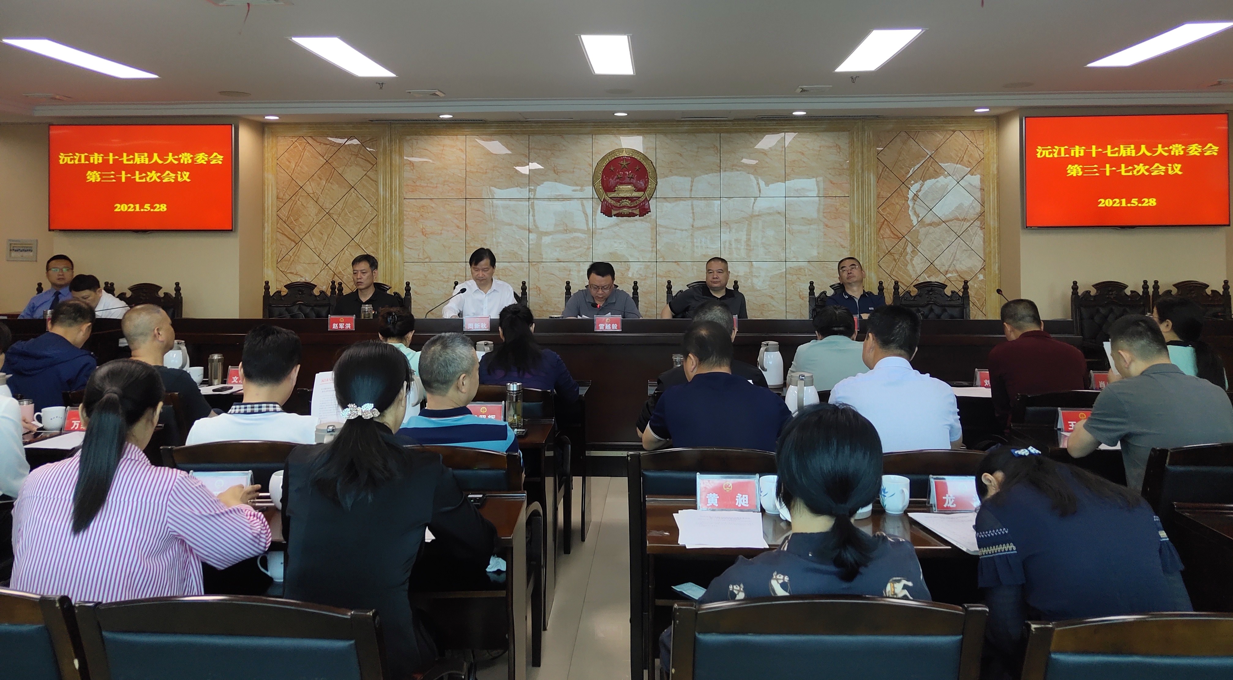 5月28日,市十七屆人大常委會第三十七次會議召開。市人大常委會主任雷越毅,副主任李志文、周新秋、譚洪祥、趙軍洪,市人大常委會組成人員出席會議。會議由周新秋主持。市人民法院院長鄒兆洲,市人民檢察院檢察長劉德芳列席會議。