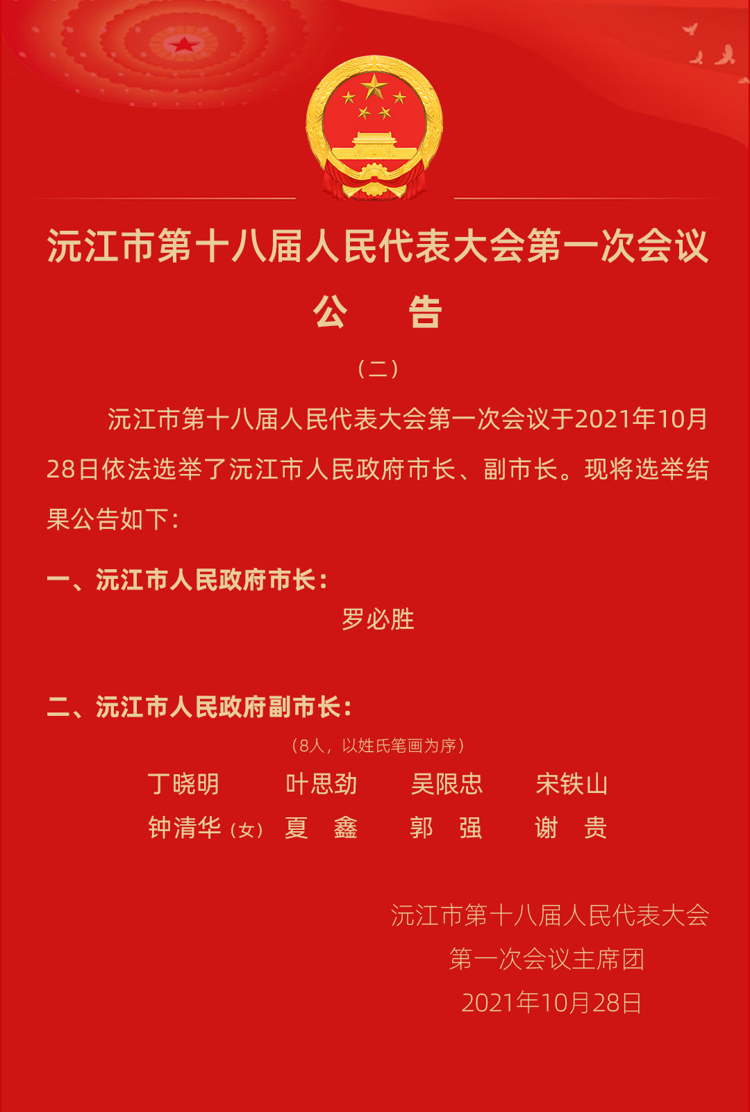 “一府一委兩院”領導選舉產生 羅必勝當選沅江市人民政府市長