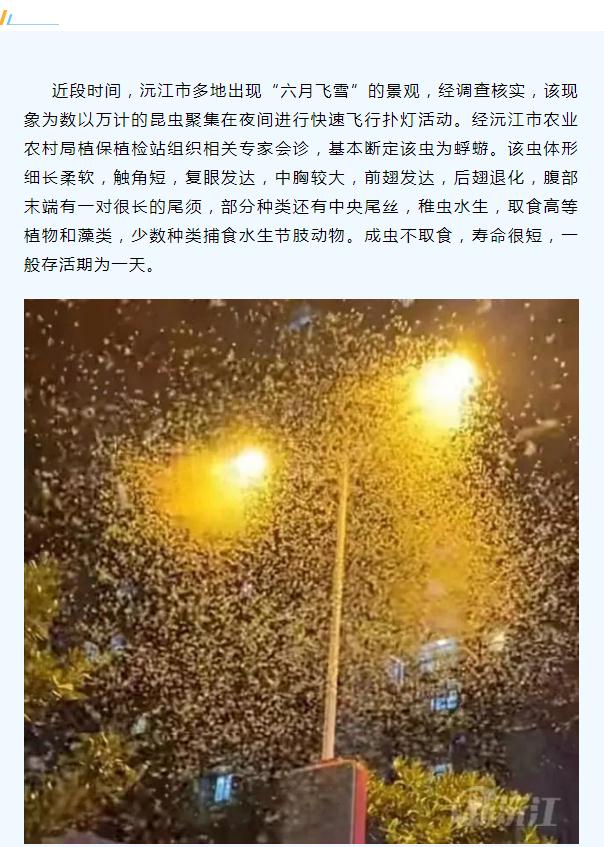 官方回應:蜉蝣聚集系正常自然現象
