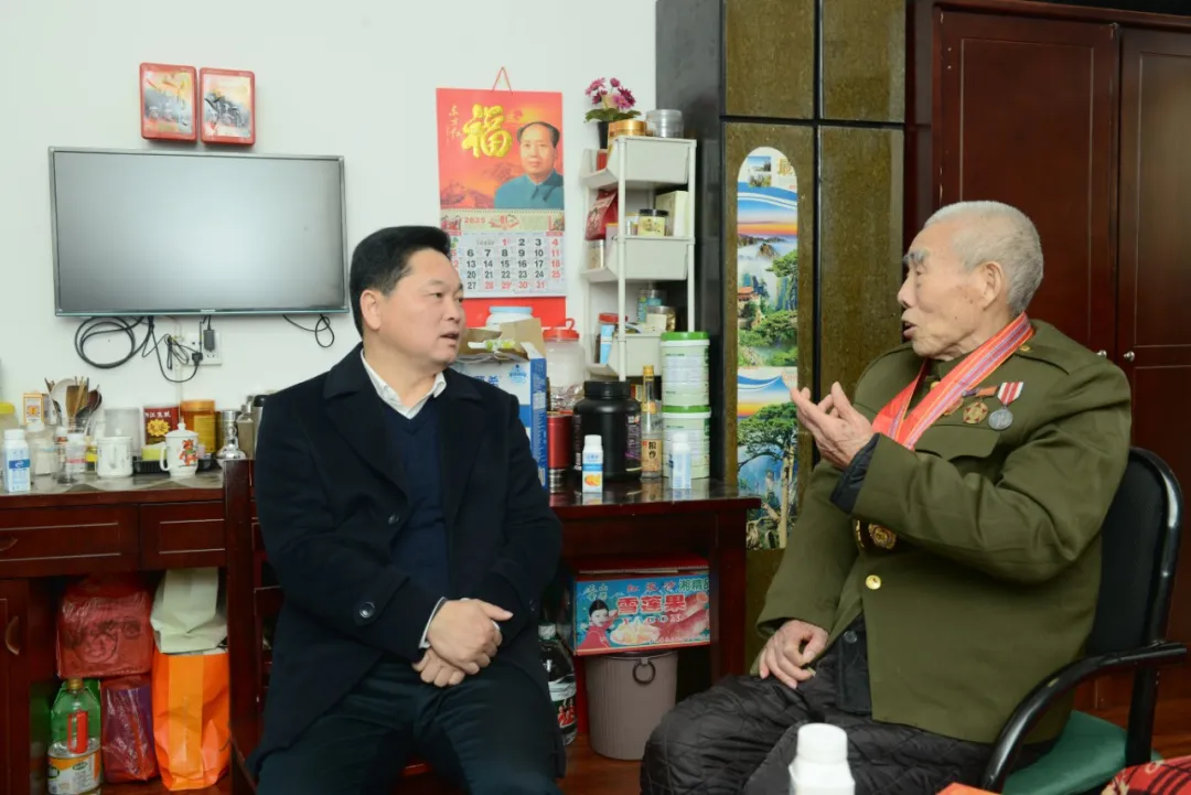隨后,楊智勇來到市社會福利中心,看望慰問參戰老兵鄒運階,親切地與他握手,詳細了解他的身體情況與生活情況,認真傾聽他講述在戰爭年代的崢嶸歲月,一一端詳他所獲得的軍功章、紀念章。在了解相關情況后,楊智勇向他致以崇高的敬意,感謝他為國家作出的巨大貢獻,叮囑他要養好身體,安享晚年。楊智勇要求,相關部門要落實好參戰老兵相關政策,讓他們的晚年生活更加幸福美滿。
