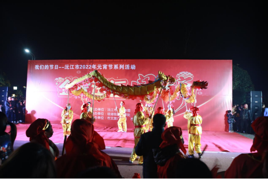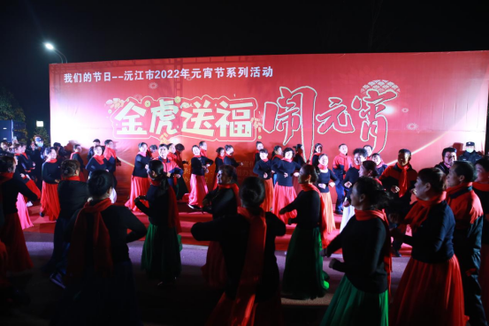 正月十五晚七時,沉浸于暮色的小河嘴村,枝頭屋檐裝點得流光溢彩,每一處都烘托出熱烈喜慶的節日氛圍,隨著一條年味濃厚的燈籠走廊,來到了“我們的節日---沅江市2022年元宵節系列活動”之“金虎送福鬧元宵”傳統民俗文化大匯演活動現場,在震撼的鑼鼓聲中,彩龍以騰云駕霧之勢入場,時而盤旋、時而騰起,引來圍觀的群眾陣陣雷鳴般掌聲和叫好聲,《拜年》、《劉海砍樵》等經典花鼓戲片段輪番上演,老干藝術團的演員們帶來了《我是沅江人》、《蝶戀花》等精彩歌舞節目,贏得數千觀眾的熱烈掌聲和滿堂喝彩聲。