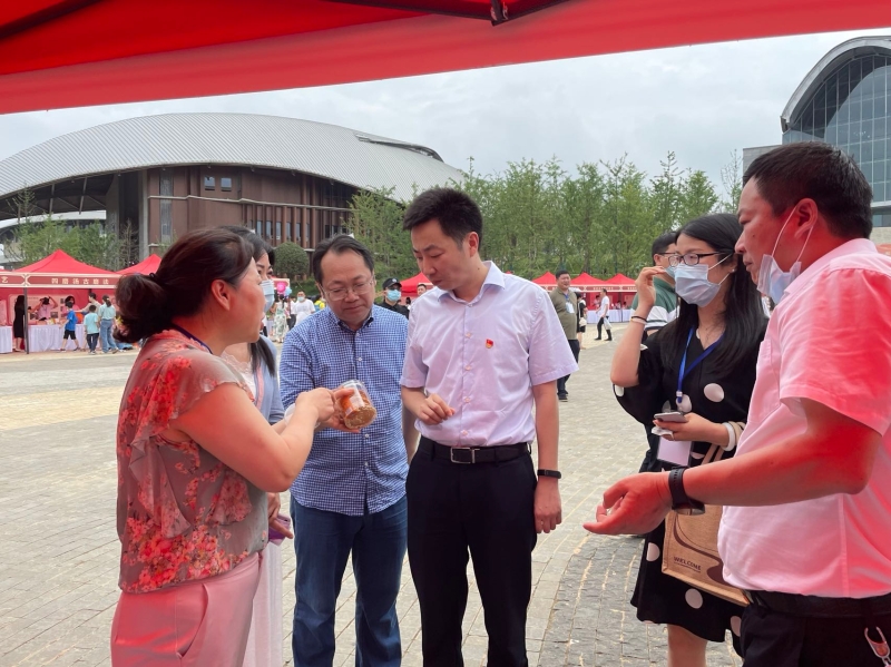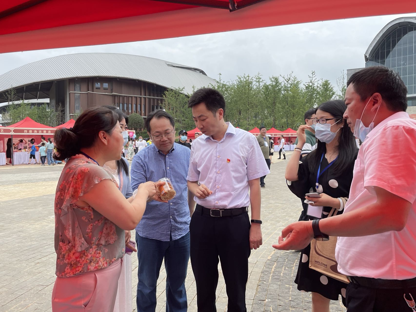 沅江市省級非遺項目“麻香糕傳統手工技藝”億昌麻香糕、市級非遺項目“南洞庭蔡娭毑貓魚傳統制作技藝”亮相展會現場。在得麻香糕傳統手工技藝的展位前,傳承人周宏向前來巡展的益陽市委常委、市委宣傳部部長陳計偉等領導介紹著產品特色,億昌主要制作本土具有歷史傳承的麻香糕,近年也根據消費者的口味研發了極具沅江湖區特色的蘆筍麻香糕、綠豆糕、芝麻球等受大眾歡迎的美味小食。
