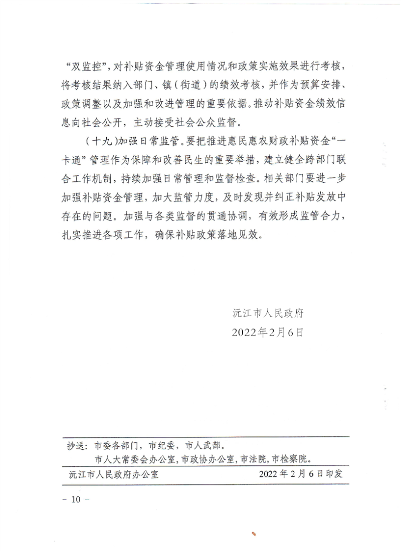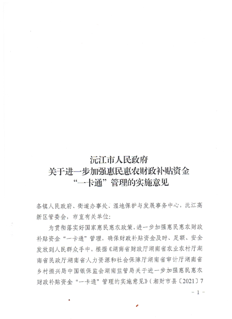 沅江市人民政府關于進一步加強惠民惠農財政補貼資金“一卡通”管理的實施意見