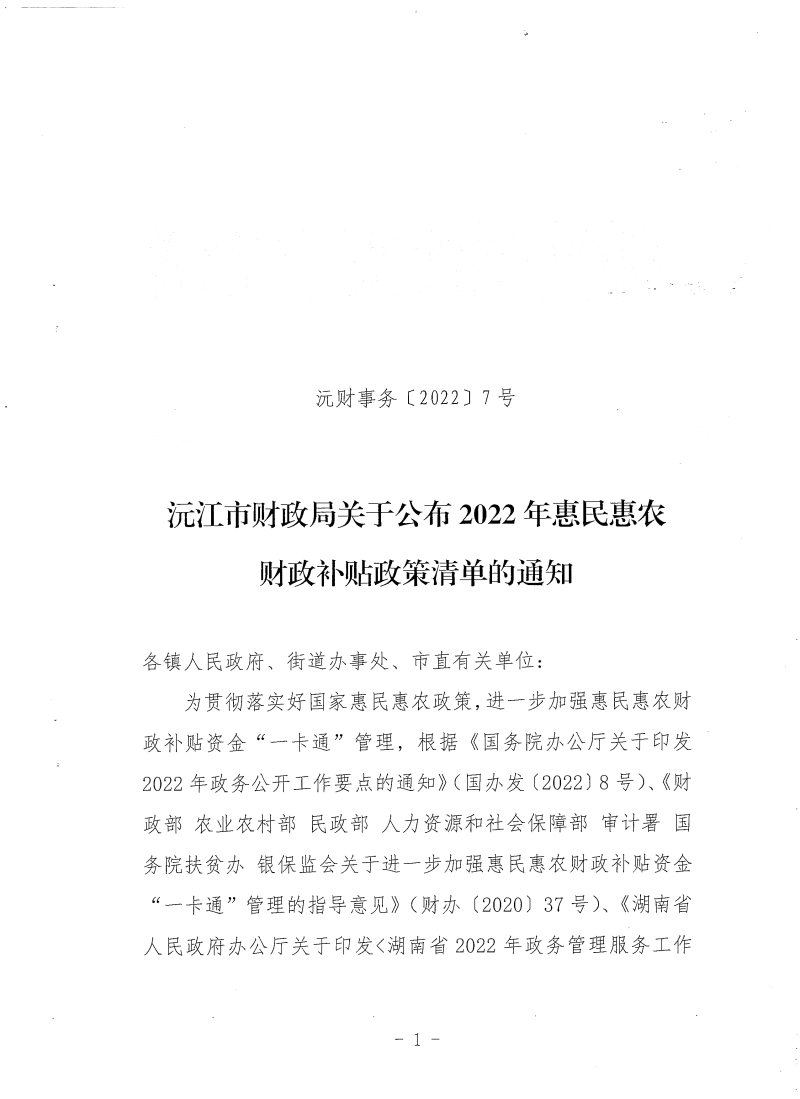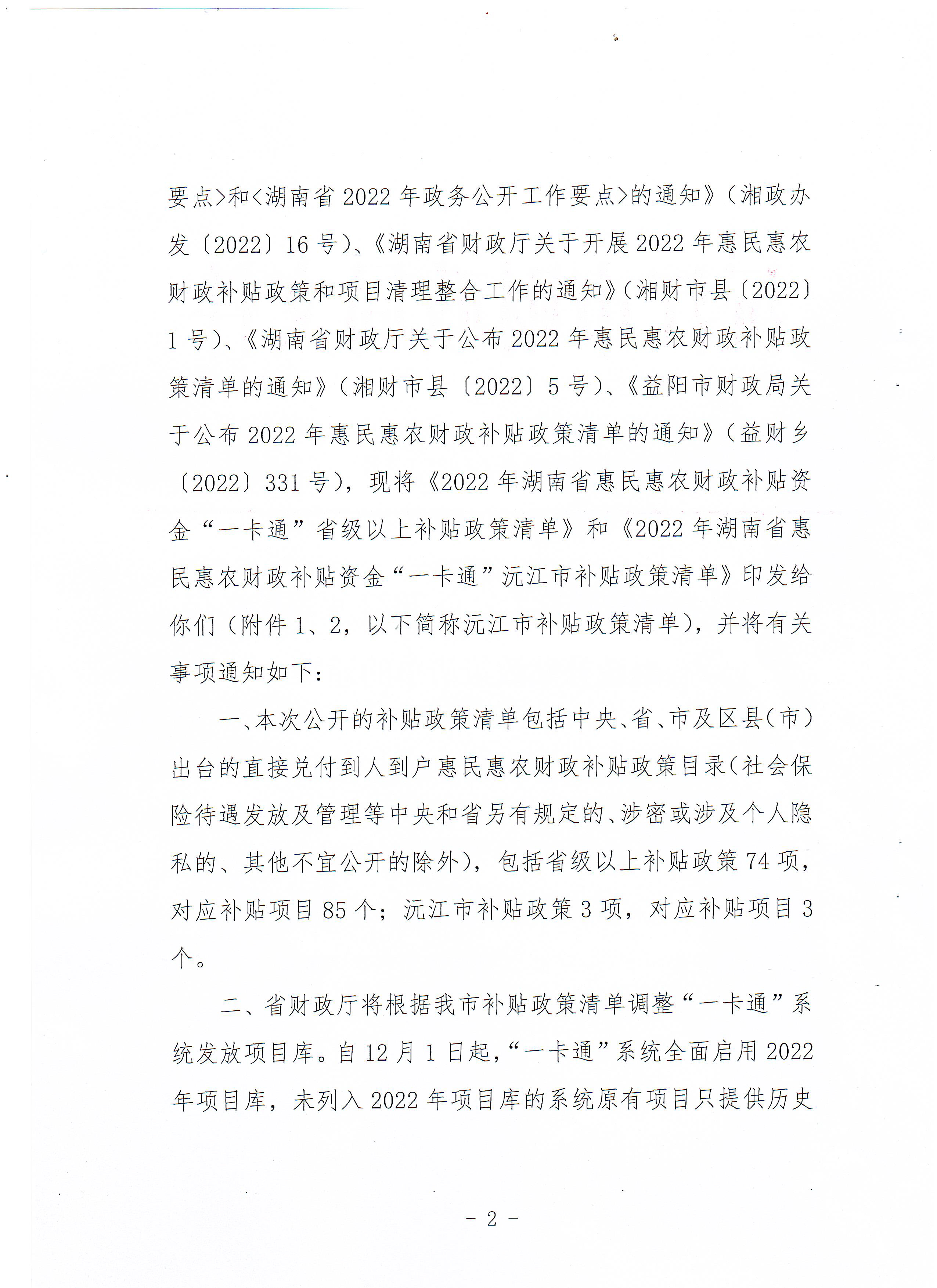2022年湖南省惠民惠農(nóng)財政補貼資金“一卡通”沅江市縣級補貼政策清單.xlsx