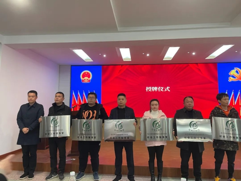 參會領導為沅江市中心城區首批22個社區社會工作服務室授牌。