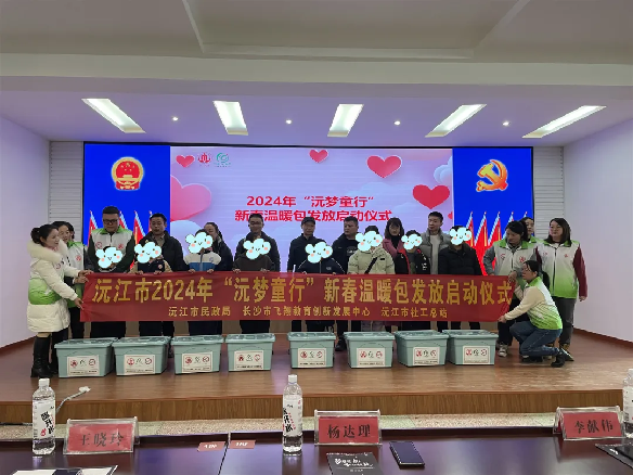 為切實做好困境兒童的關愛活動工作,助力孩子們的健康成長。1月26日,由沅江市民政局主辦,長沙市飛翔教育創新發展中心承辦的2024年迎新春送溫暖—“沅夢童行”新春溫暖包發放啟動儀式在市民政局原婚姻登記處五樓大會議室舉行。沅江市民政局黨組成員、副局長楊達理,工會主席李獻偉,市民政局、市教育局、團市委、市婦聯相關負責同志,社工站社工、大學生志愿者及受助家庭代表200余人參加了儀式。