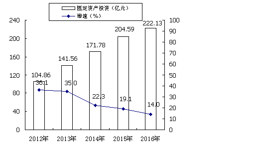投資穩步增長2016年,全市完成固定資產投資222.13億元,同比增長14.0%。全市重點建設項目103個,總投資211.3億元,年度計劃投資81.67億元,累計完成投資55.26億元。