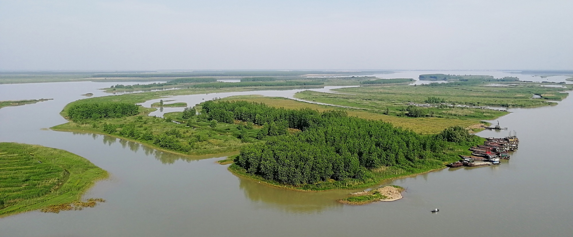 人們談及“七星”,總是含有道學禪意的韻味。沅江市區西北方向的七星洲,是水路縱橫切割,而呈現出的七個大小不一的湖洲,如同北斗七星,聯成弧狀伴在萬子湖邊,綿延七八里,洲土共計兩千余畝。一番巧妙點綴,仿佛悟透了在水一方的靈性玄機。