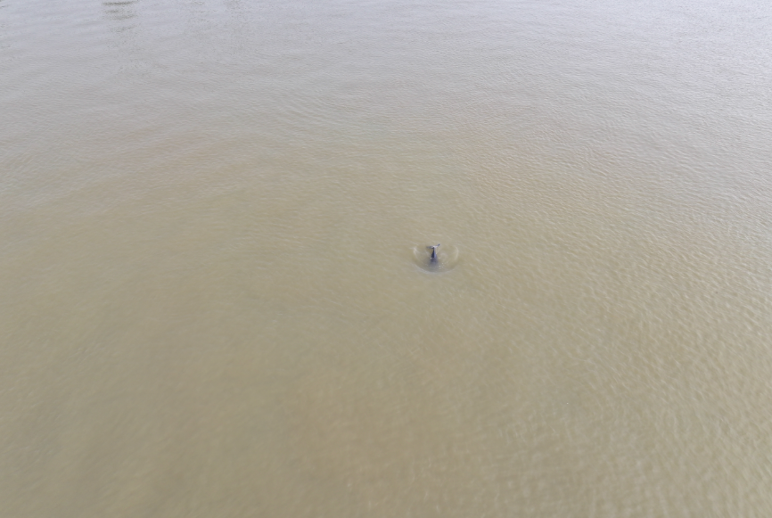 4月27日,沅江市漁政執法人員在萬子湖水域執行日常巡護時,通過無人機監測發現異常:一只體長約1.3米的成年江豚尾鰭不僅纏繞著陳年繩網,還出現大面積感染性白斑,活動非常緩慢。接到報告后,湖南省農業農村廳迅速響應,由湖南省水產研究所、湖南省水生野生動物救護工作站(湖南海底世界)醫療團隊和岳陽市江豚中心工作人員等組成15人救援隊,攜帶專業器械連夜趕赴現場,特邀中國科學院水生生物研究所江豚研究專家現場指導救護。