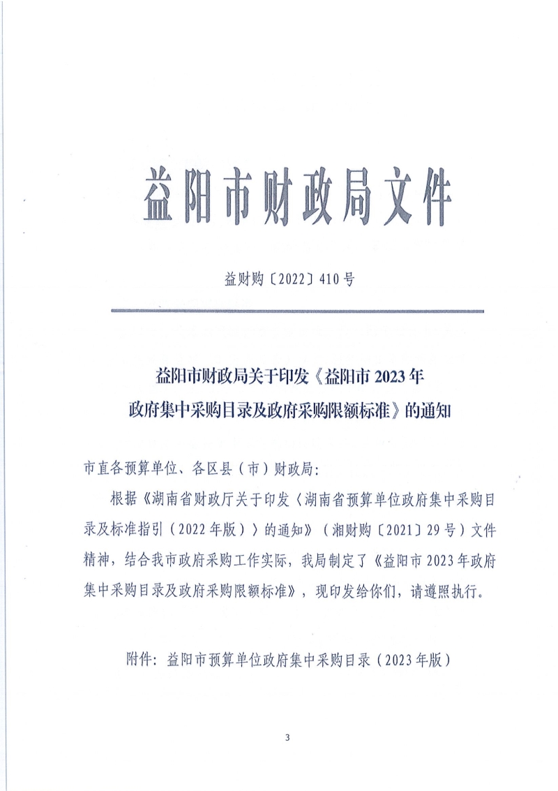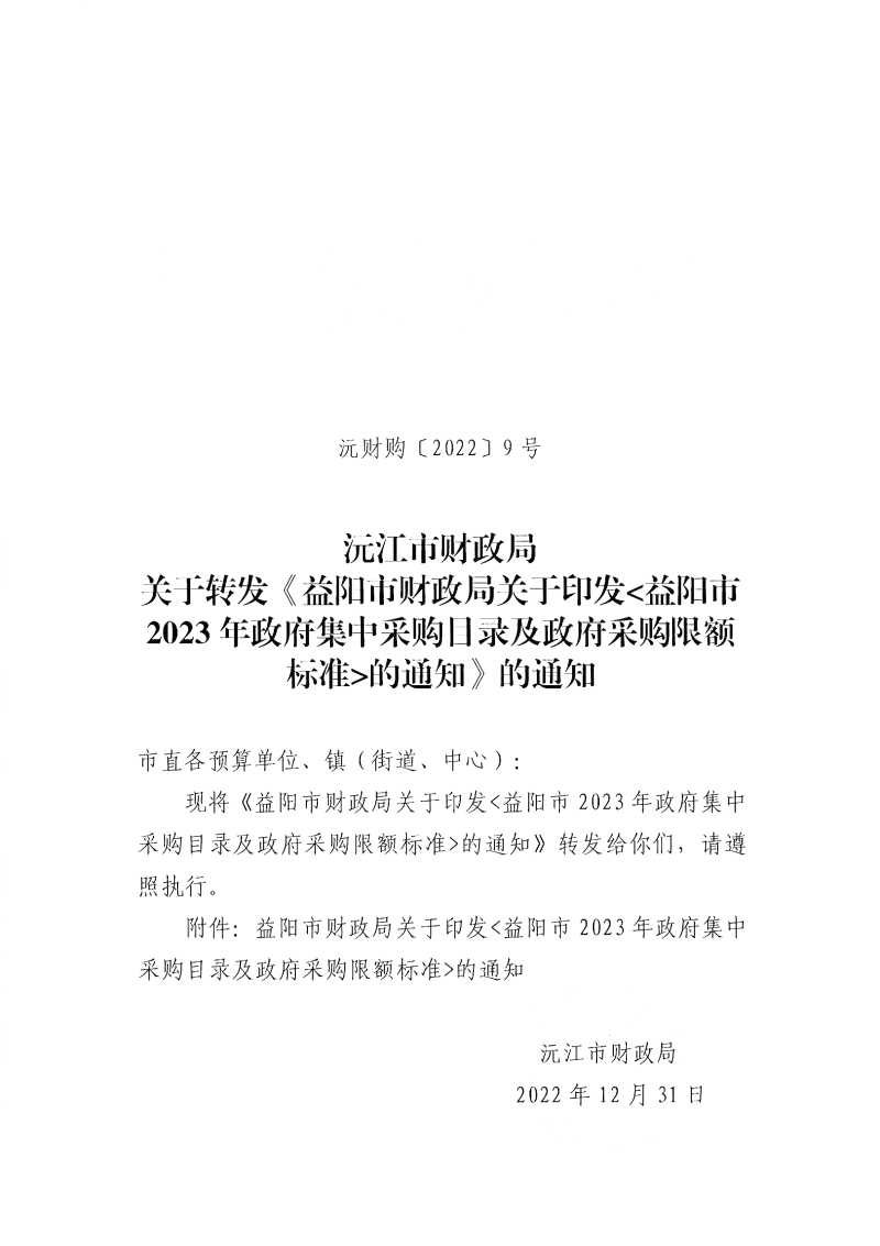 沅江市財政局關于轉發《益陽市財政局關于印發益陽市2023年政府集中采購目錄及政府采購限額標準的通知》的通知