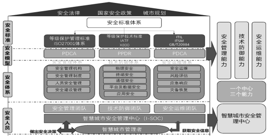 安全管理能力。以等級保護管理標準及ISO27001體系為核心,建立新型智慧城市的安全策略、安全制度、安全機構、安全人員、安全建設及安全運行機制。