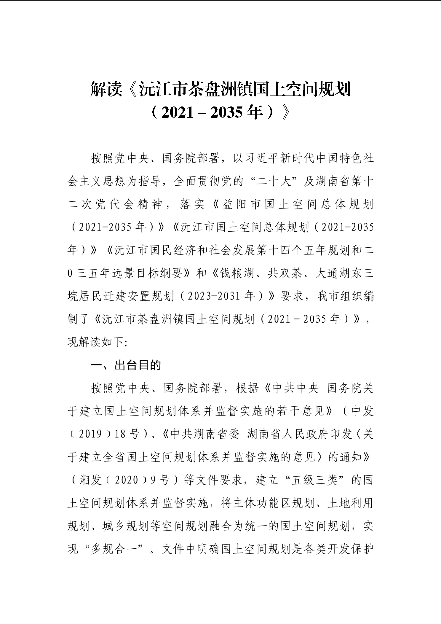 沅江市茶盤洲鎮國土空間規劃(2021-2035年)公示