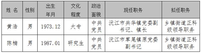 沅江市委管理干部任前公示公告(2023年3月14日)