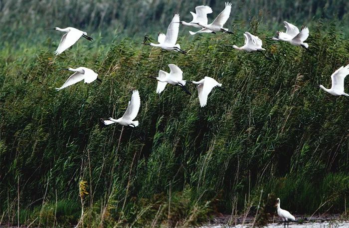 近日,湖南省沅江市環保志愿者李劍志來到南洞庭湖開展巡湖工作,在這片水草豐盛的地方,聚集了黑翅長腳鷸、白鷺、水雉等許多“濕地精靈”。陽光下,它們或振翅飛翔,或愜意棲息,展現出一幅生態美景圖。