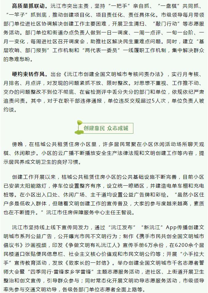 何以賞心悅目——沅江市文明城市創建工作綜述