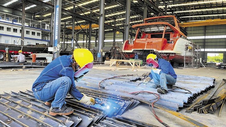 海荃游艇的車間內,也是一片繁忙景象。這里的鋼制客船、鋁合金雙體游艇等金屬船舶訂單不少,來自貴州遵義的焊工駱科會擦著臉上的汗說,他們來10多天了,一直沒停下過手中的活。