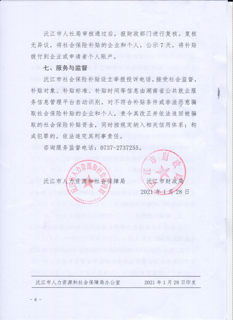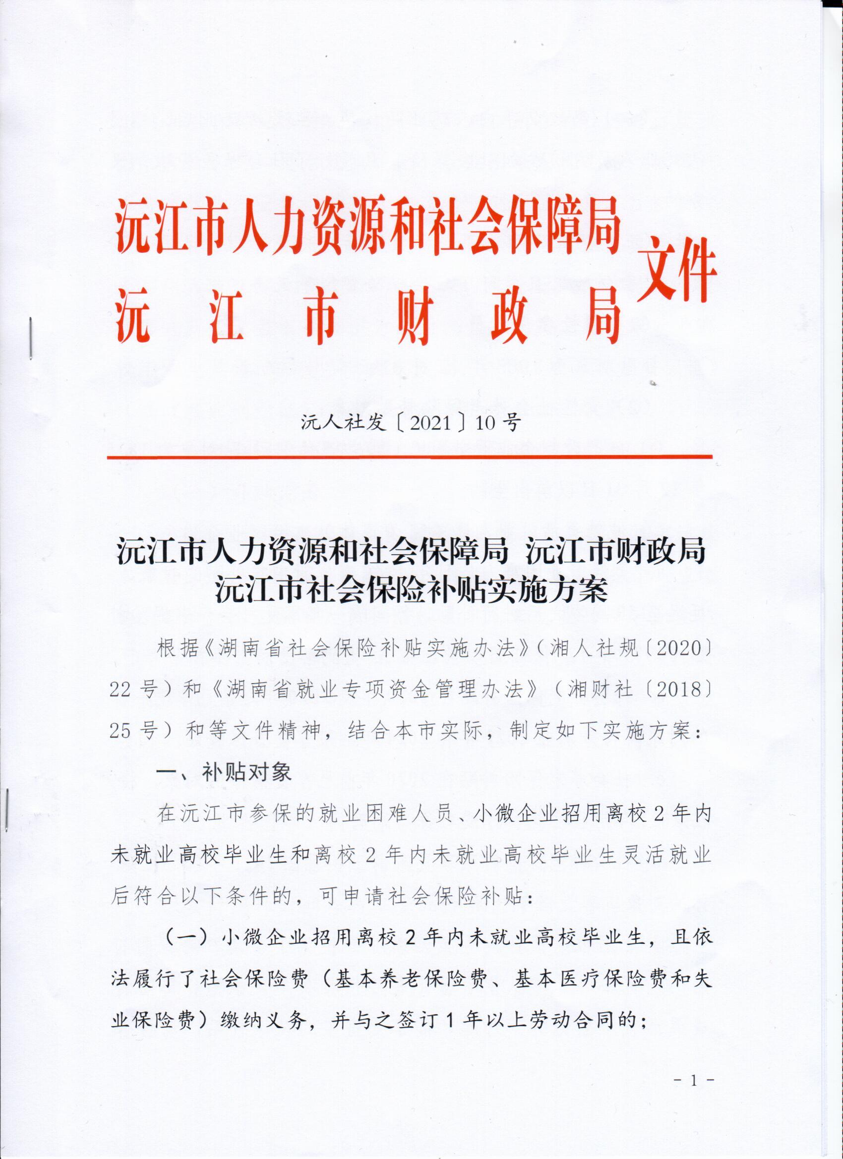 沅江市社會保險補貼實施方案