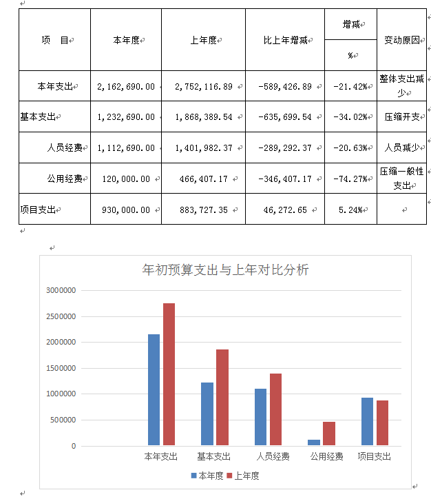 包括單位收入、支出年初預算安排情況,與上年對比情況及增減變動原因(可用柱形圖或折線圖)。