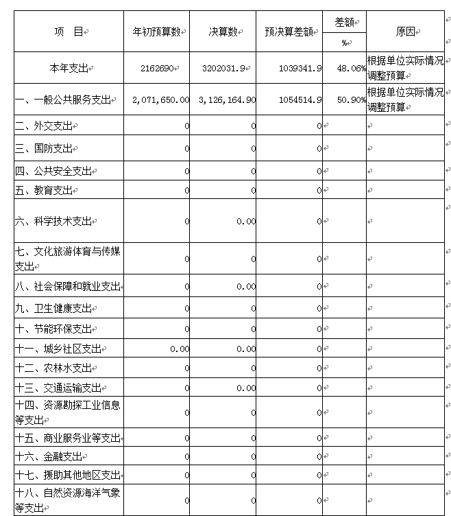 本年度財政撥款支出3,202,031.90元,其中:基本支出1,637,998.79元:人員經費1,412,783.94元,公用經費225,214.85元;項目支出1,564,033.11元。