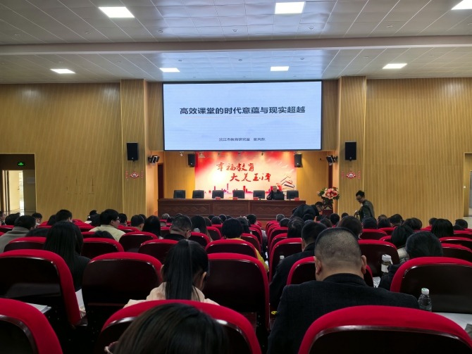 下午,市教育局教研室主任張向東作《高效課堂的時代意蘊與現實超越》主題報告;玉潭學校和政通小學分別作了《構建幸福課堂,讓師生共同成長》《以生為本,向效而行》的經驗交流;市教師發展中心主任劉鎮濱對全市教師在改革提升教育教學質量中的努力和辛苦表示感謝,肯定了各校在推進高效課堂建設過程中取得的成績和成果,也指出三個方面值得改進的問題及下一階段的工作重點。