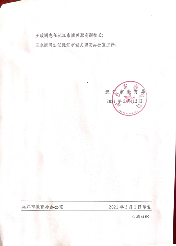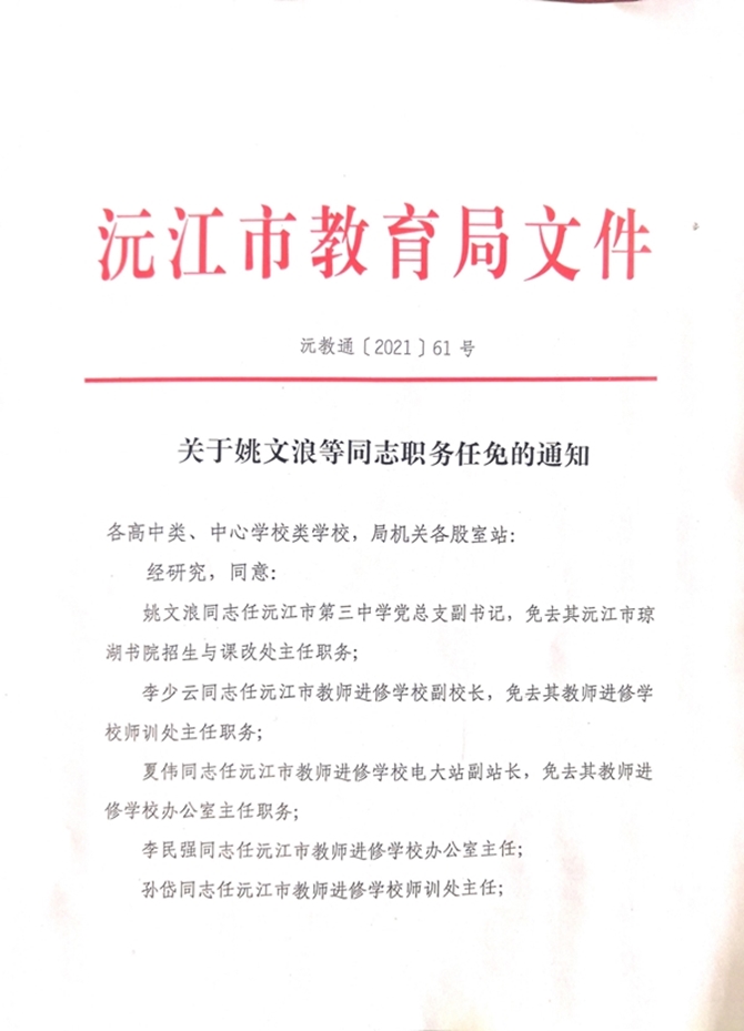 關(guān)于姚文浪等通知職務(wù)任免的通知