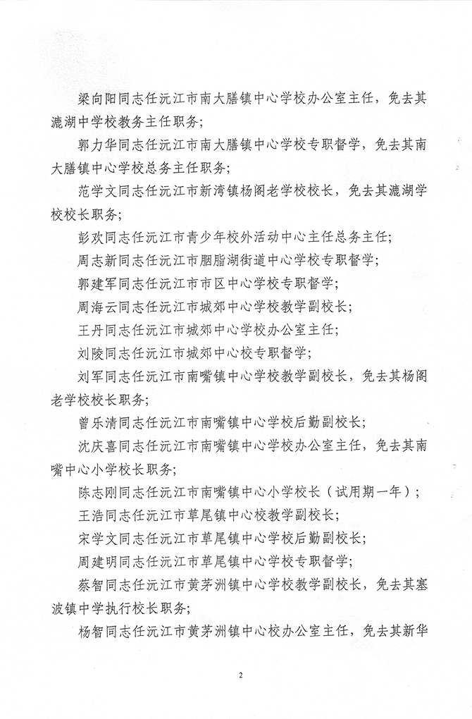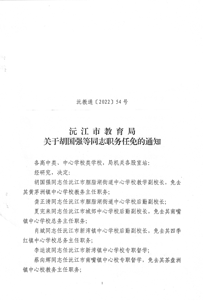 沅江市教育局關(guān)于胡國(guó)強(qiáng)等同志職務(wù)任免的通知