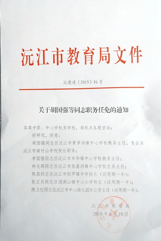 關于胡國強等同志職務任免的通知