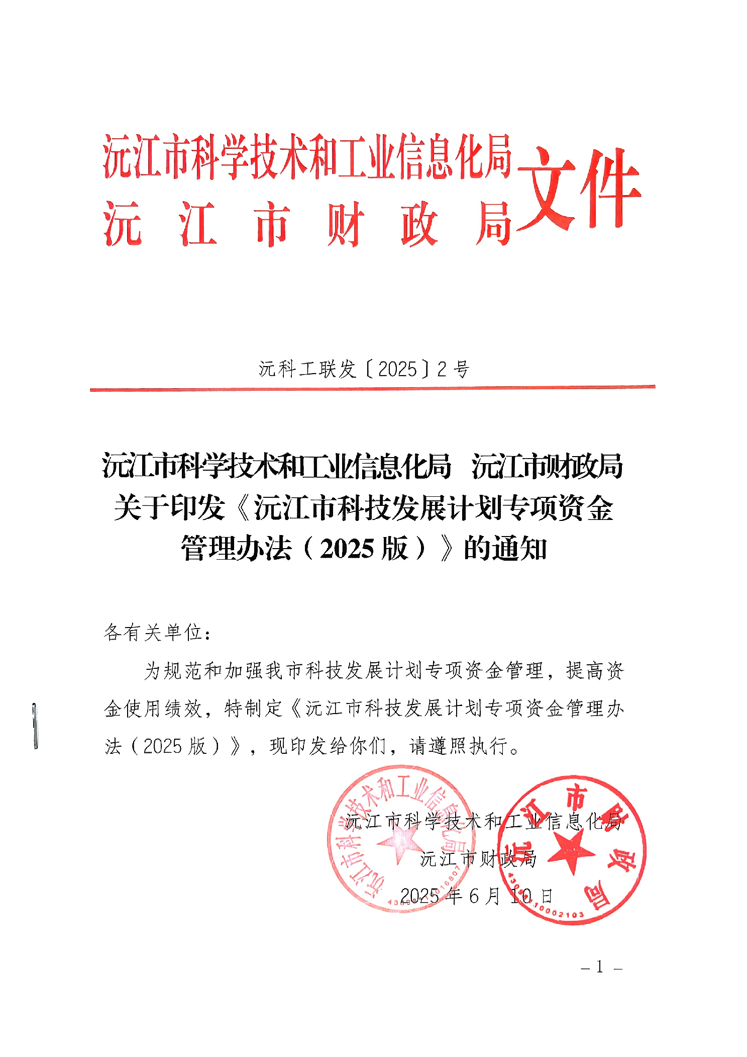 沅江市科技發展計劃專項資金管理辦法(2025版)