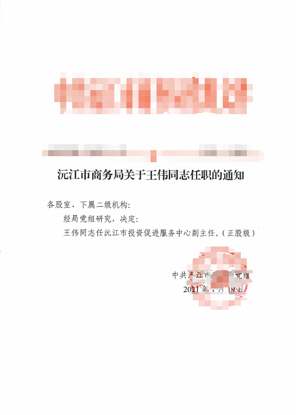 關于王偉同志任職的通知