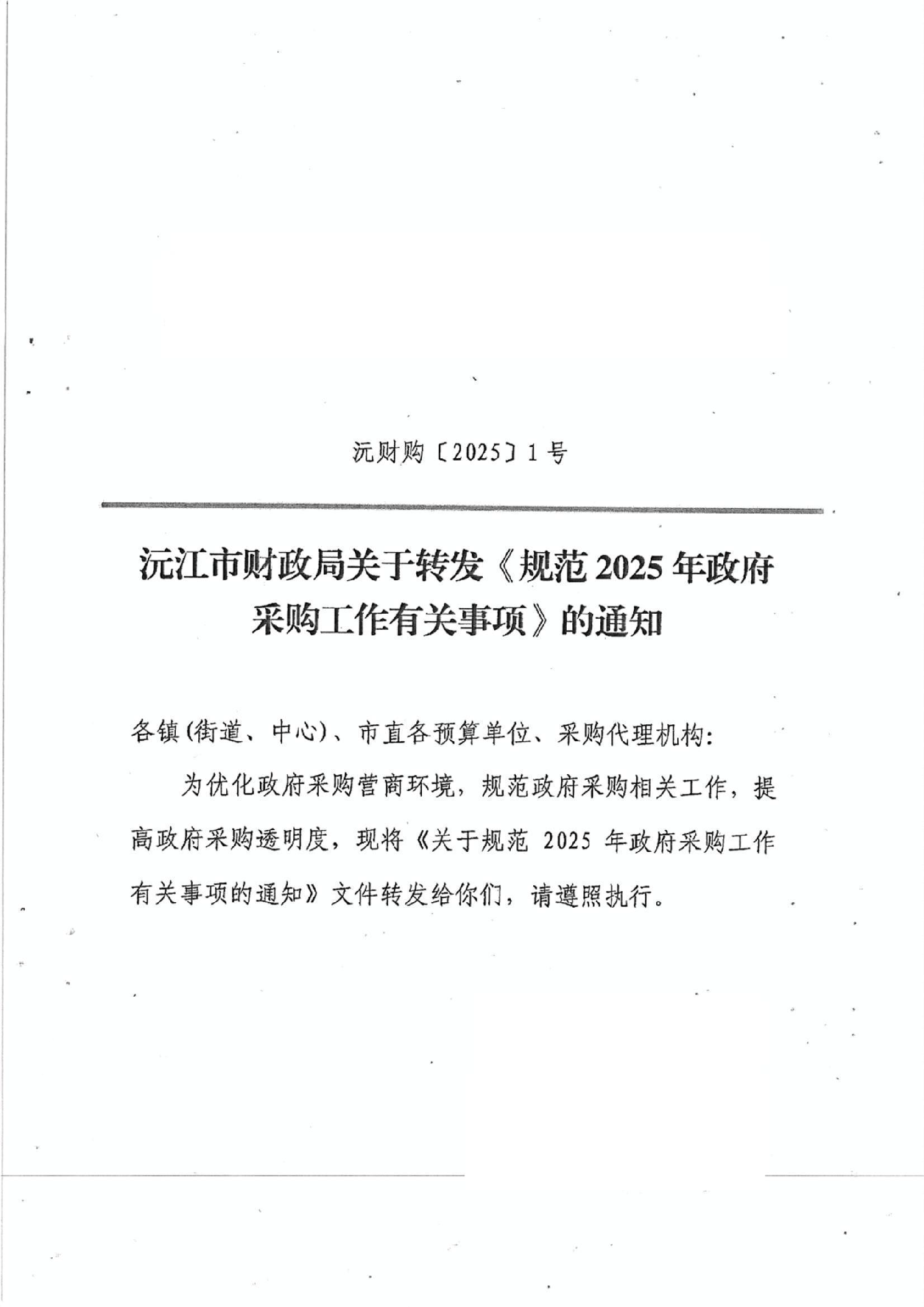 轉:沅江市財政局關于轉發《規范2025年政府 采購工作有關事項》的通知
