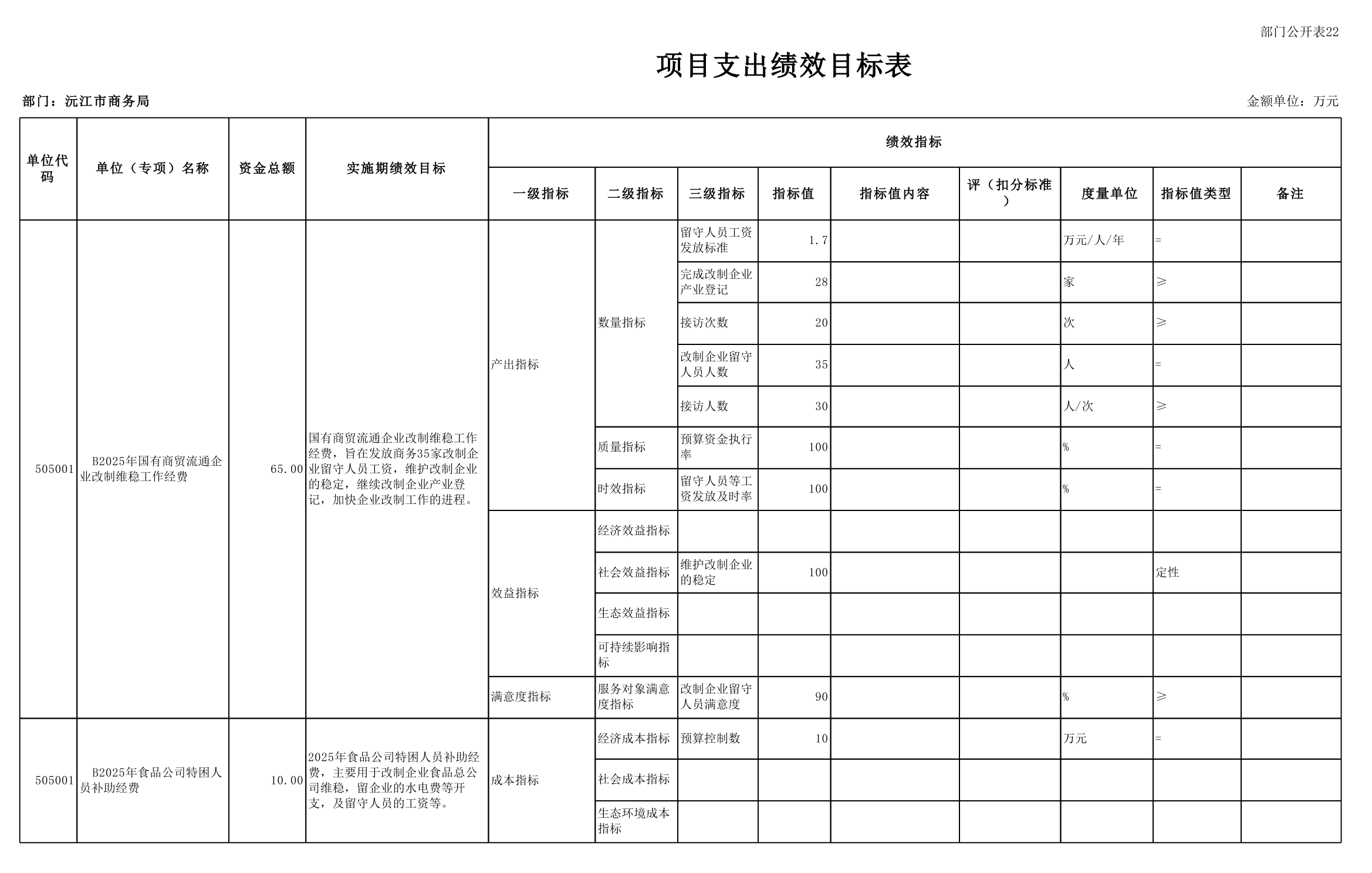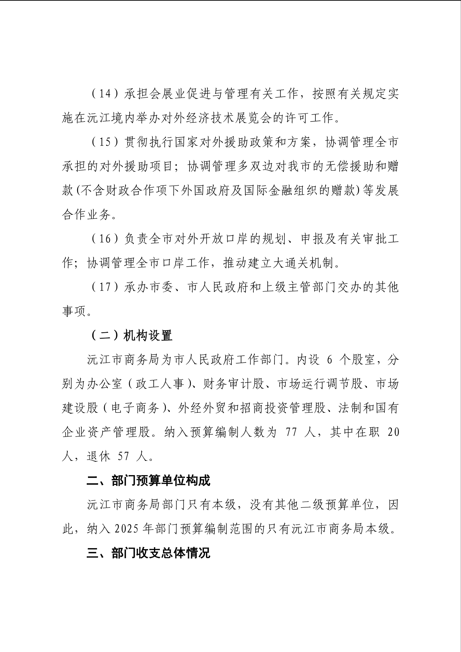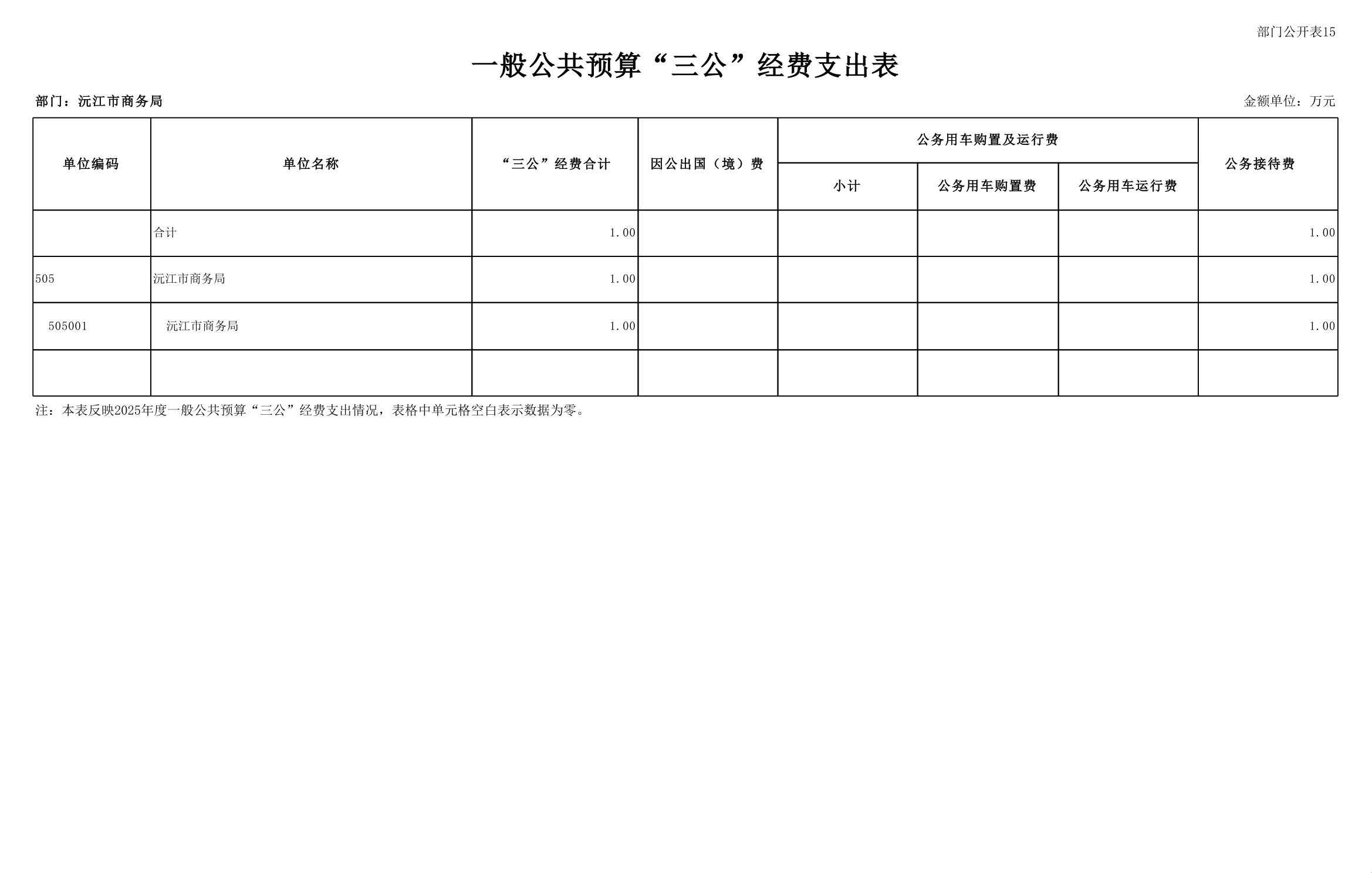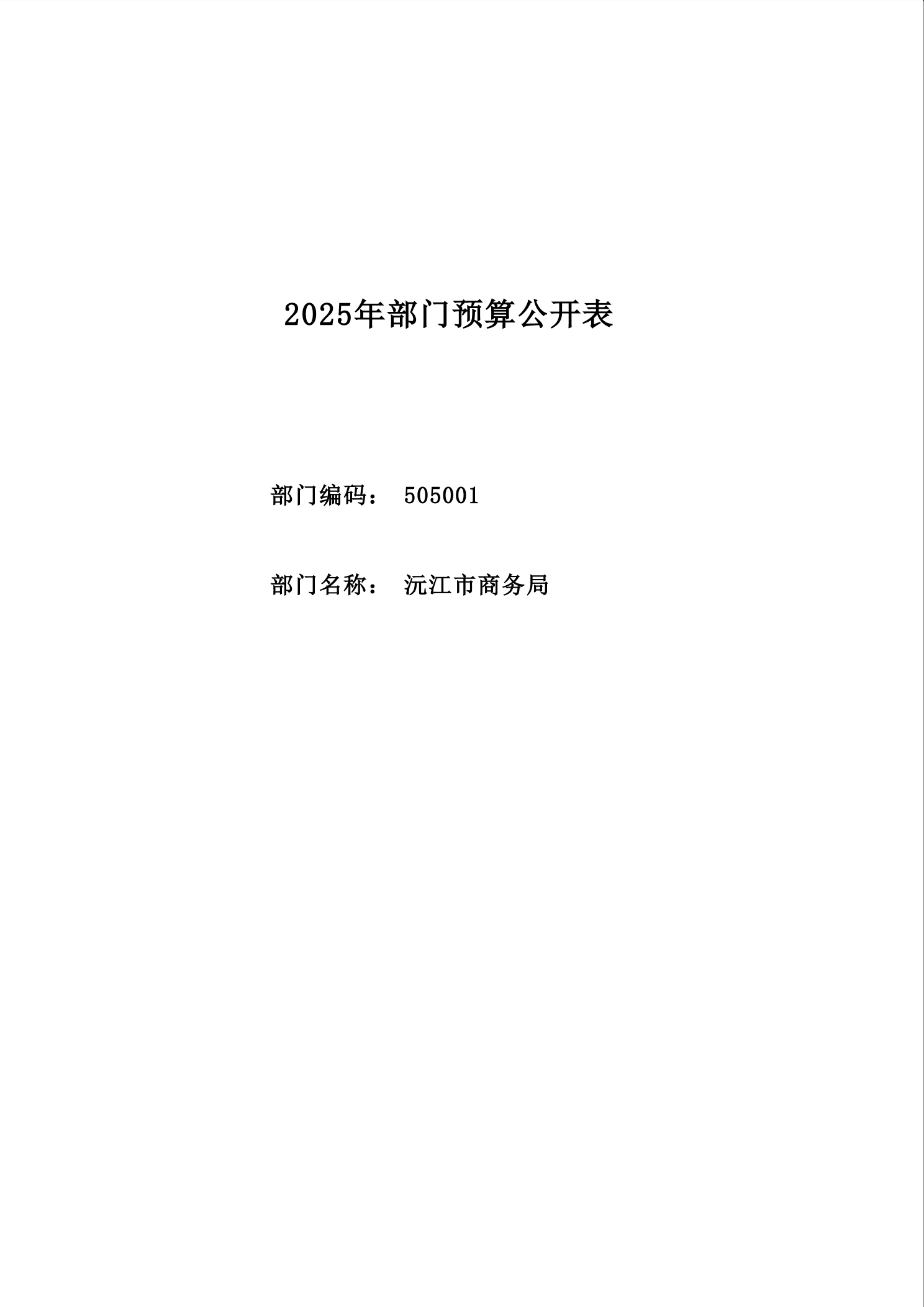 2025 年沅江市商務局部門預算公開