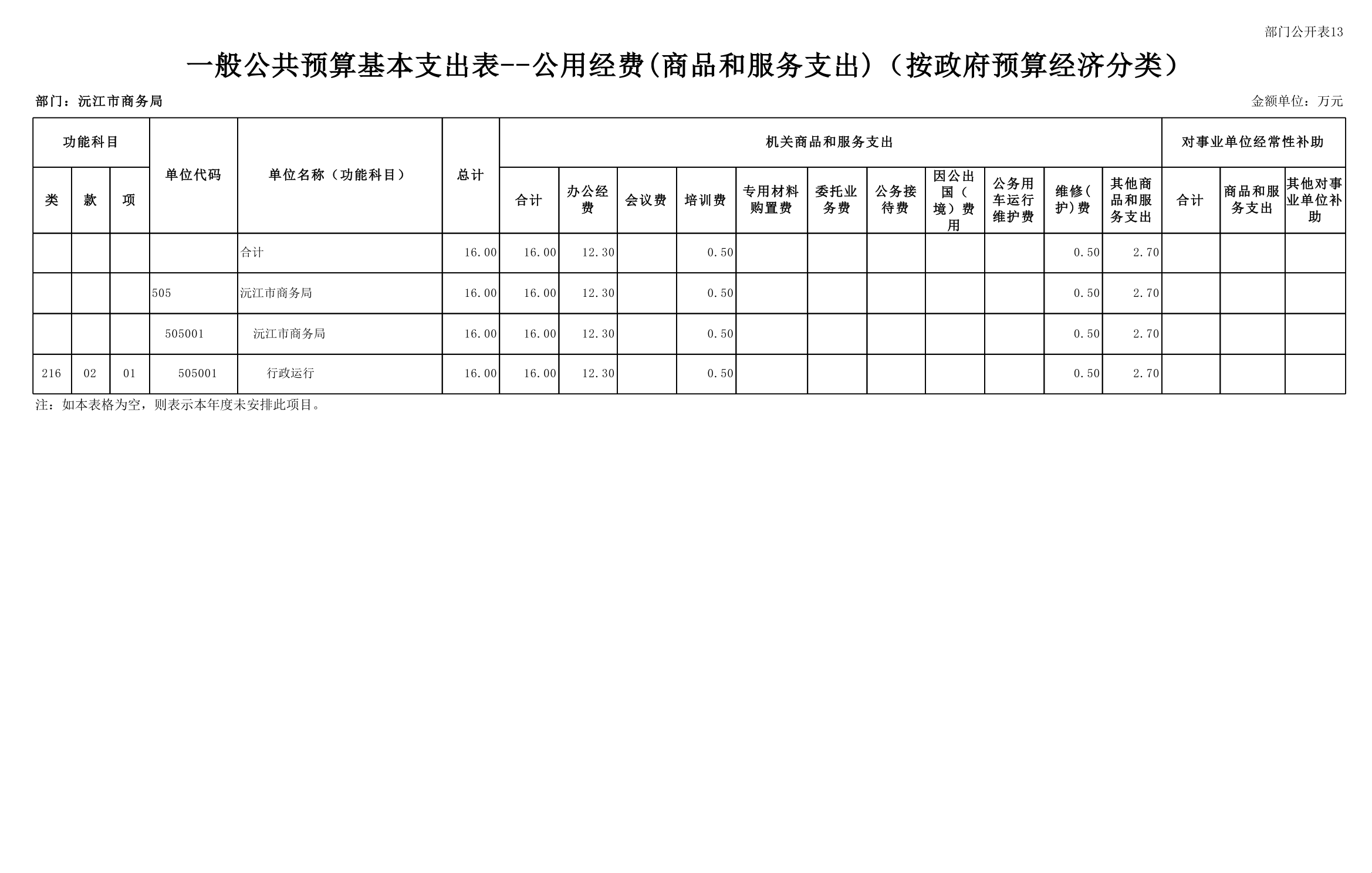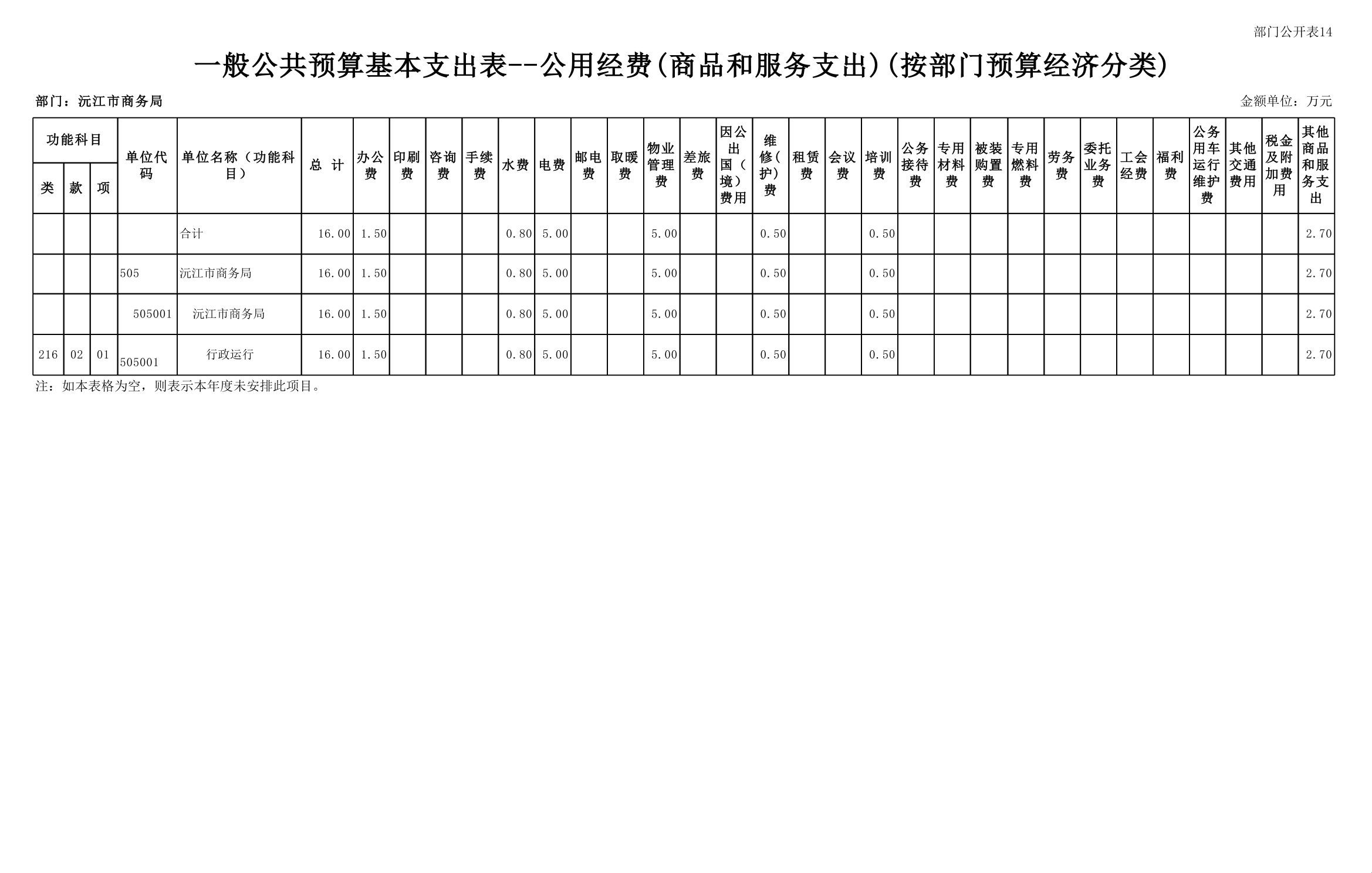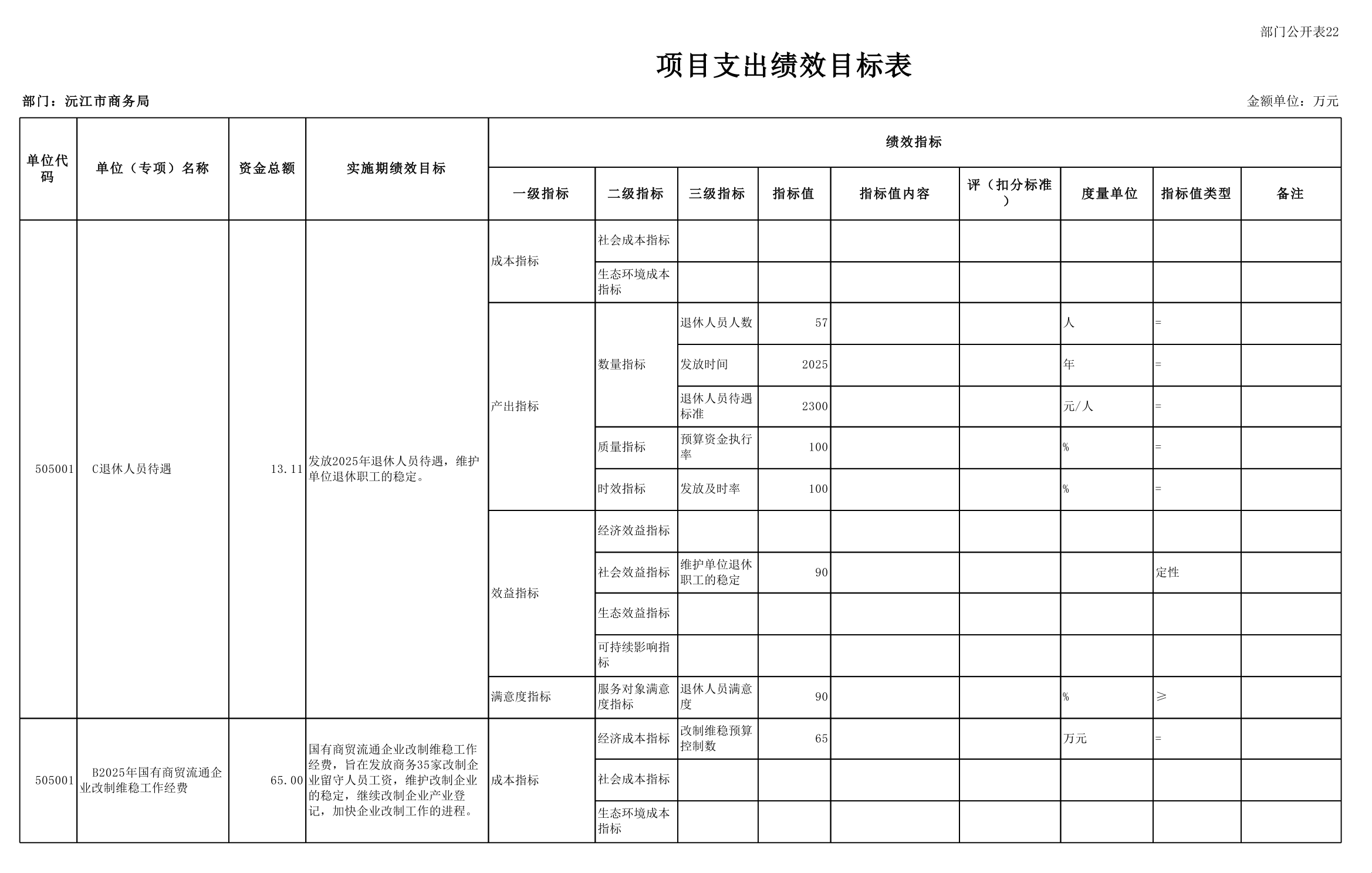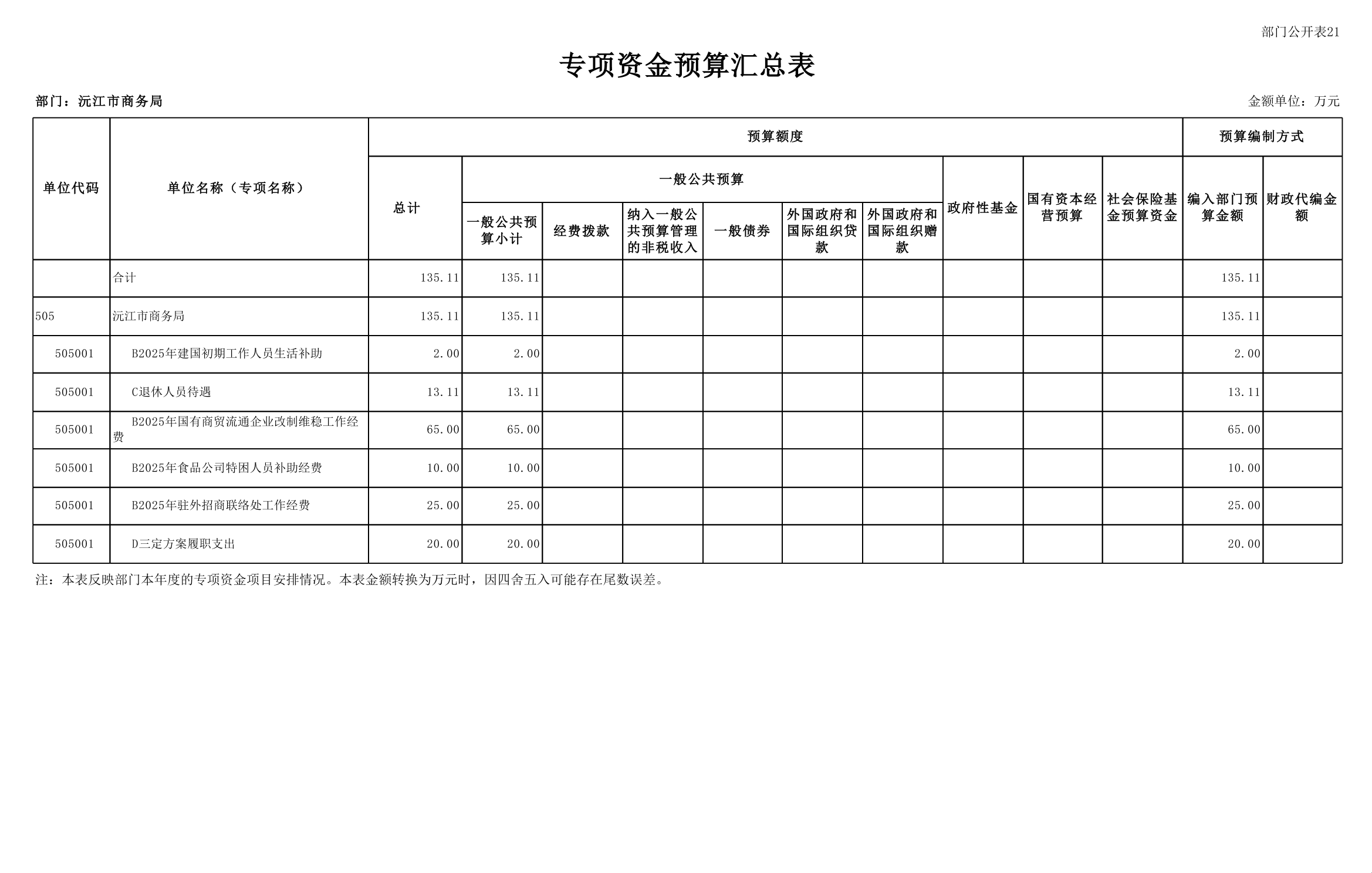 2025 年沅江市商務局部門預算公開
