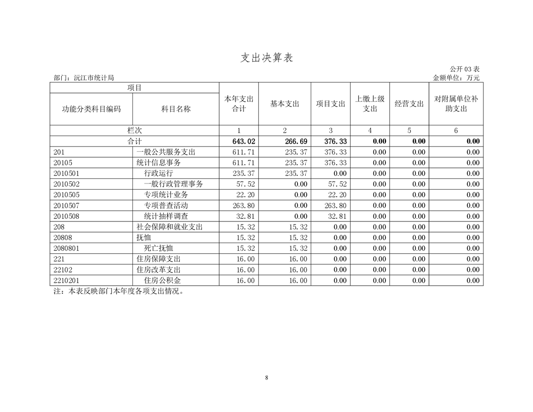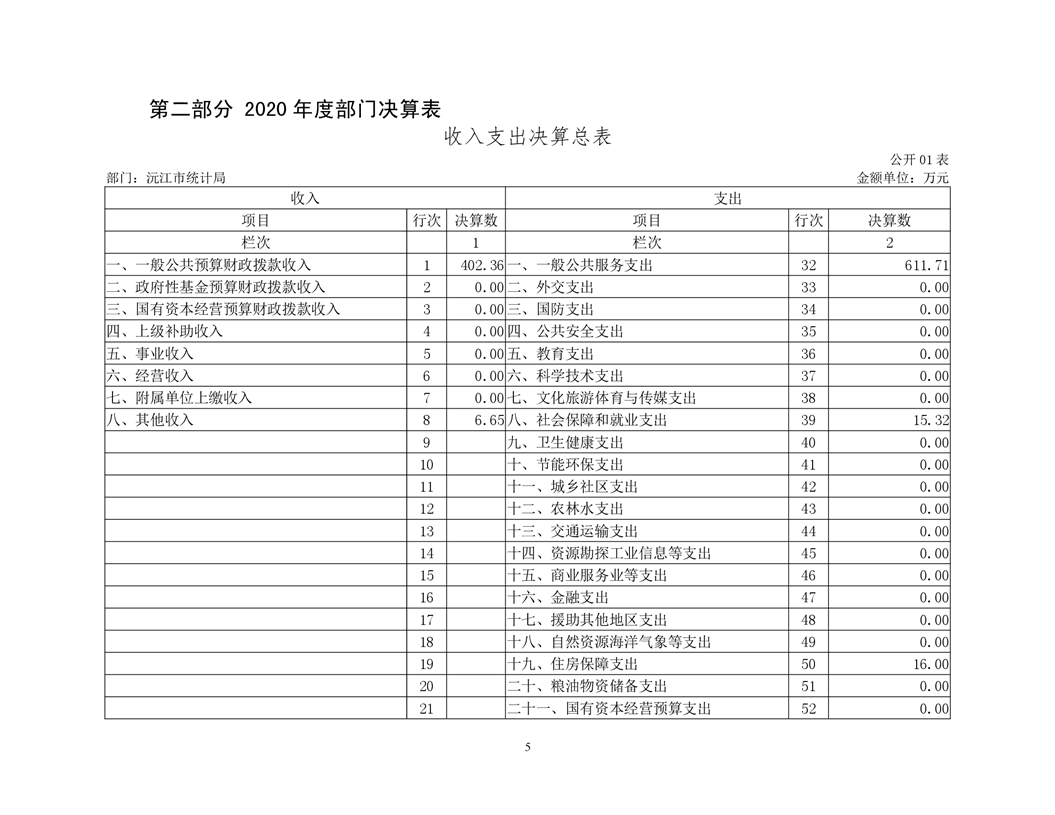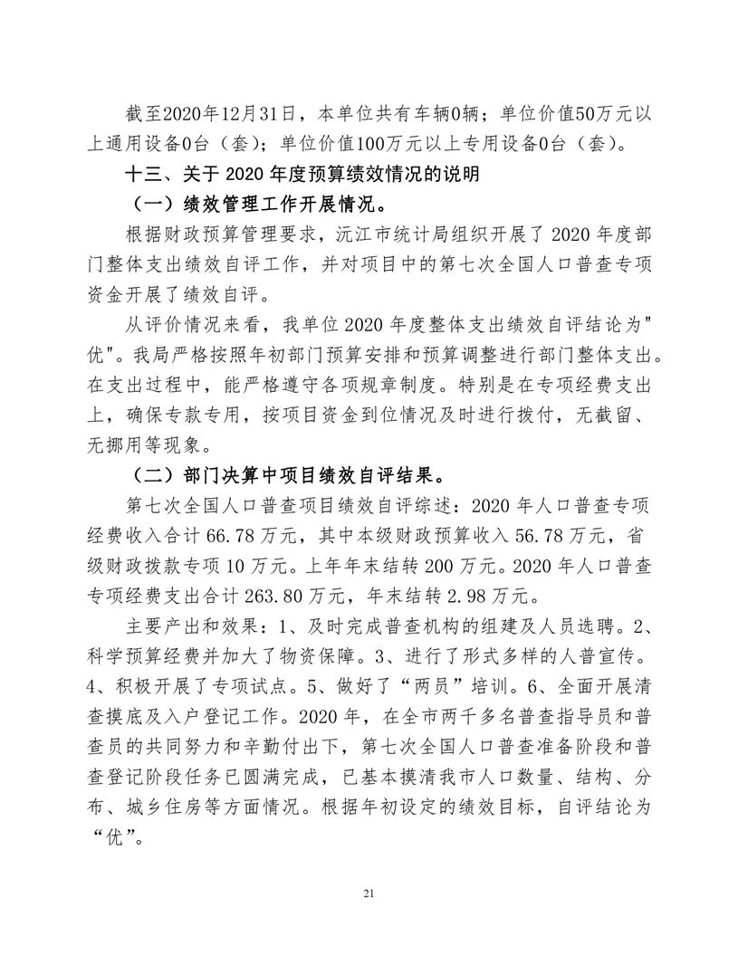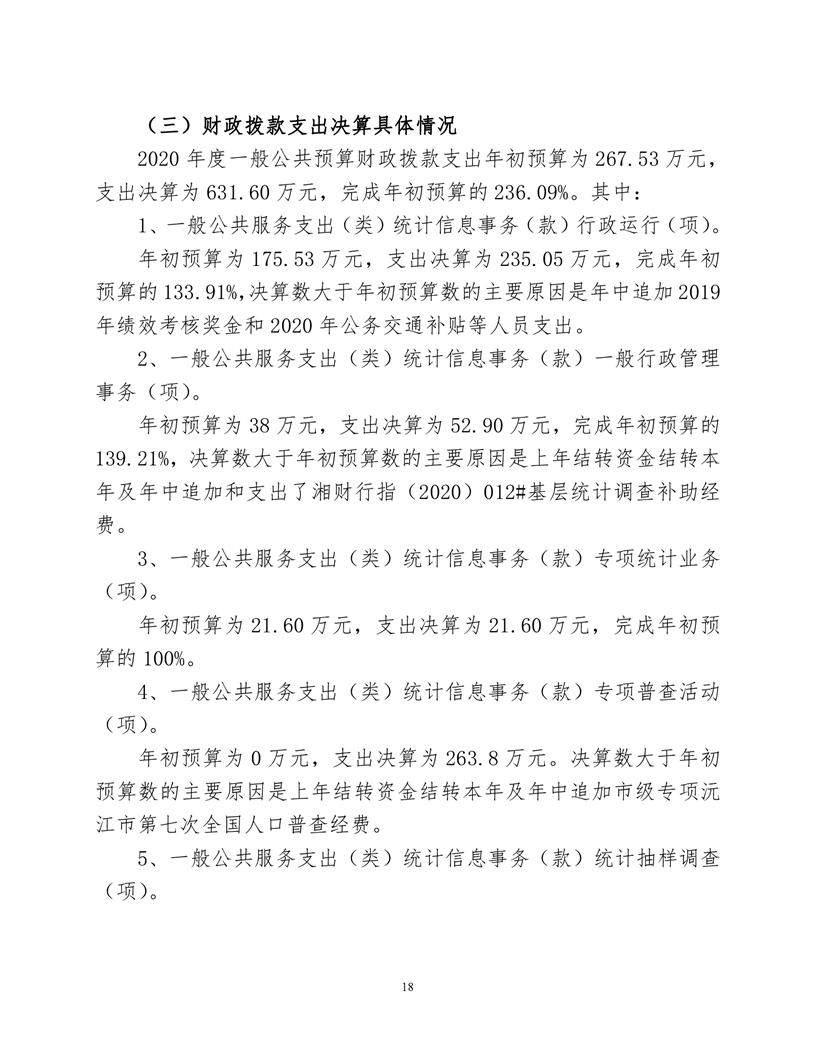沅江市統(tǒng)計(jì)局2020年度部門決算公示