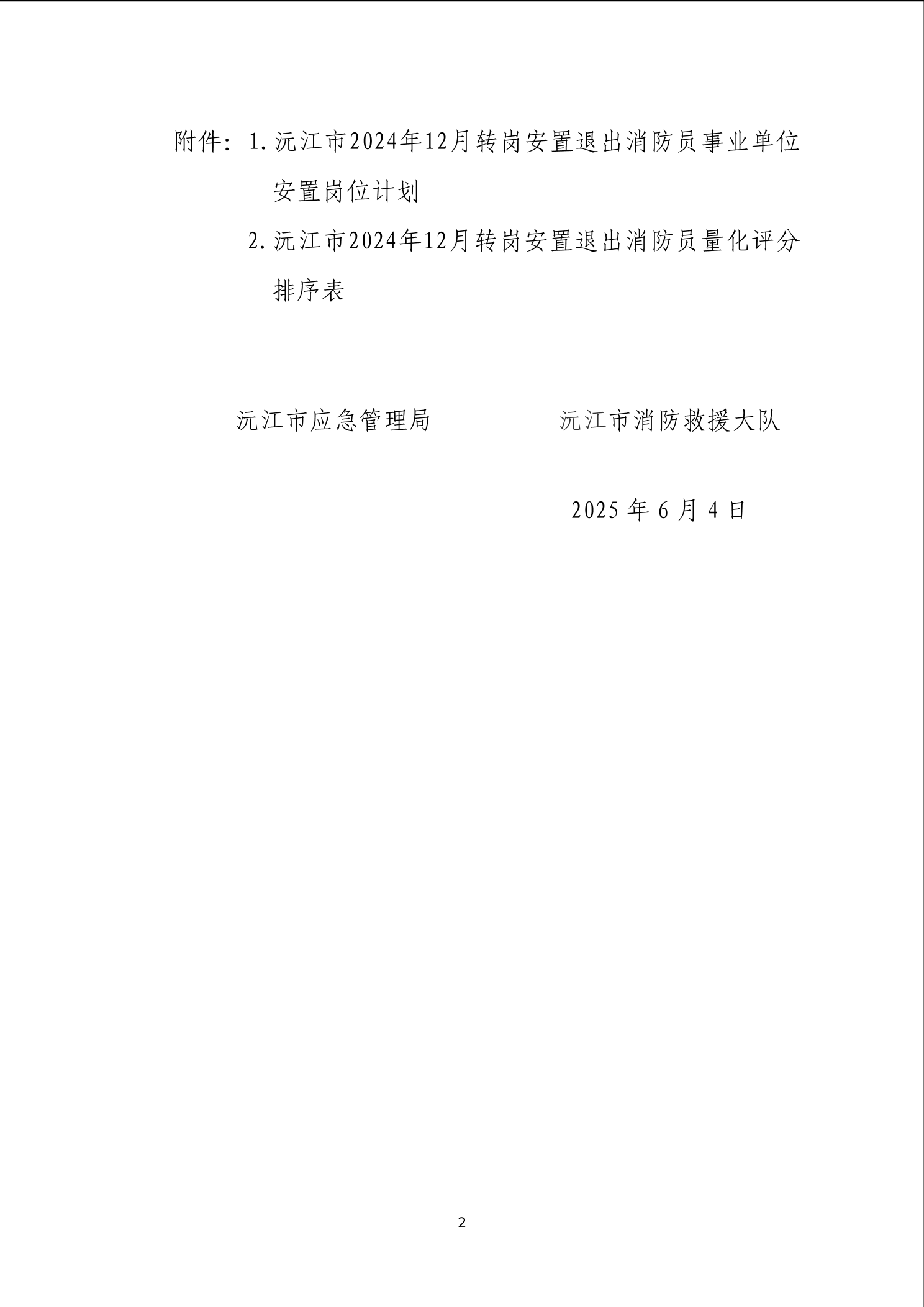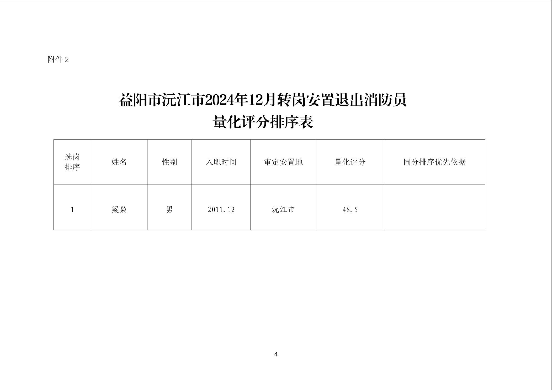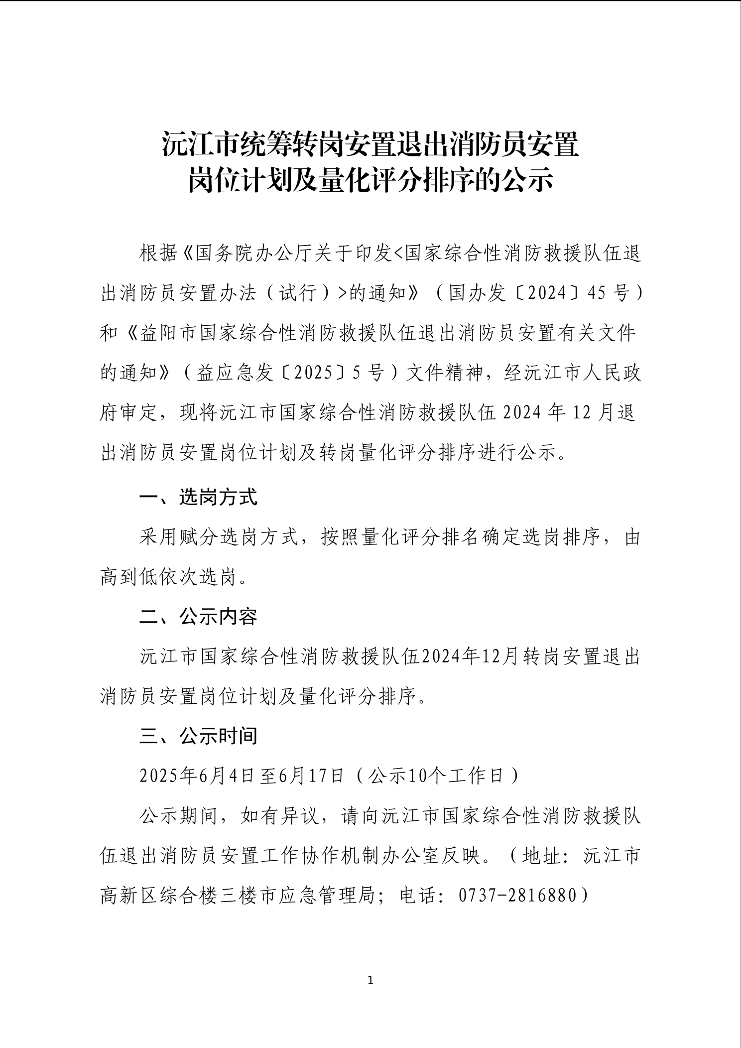 沅江市統(tǒng)籌轉崗安置退出消防員安置崗位計劃及量化評分排序