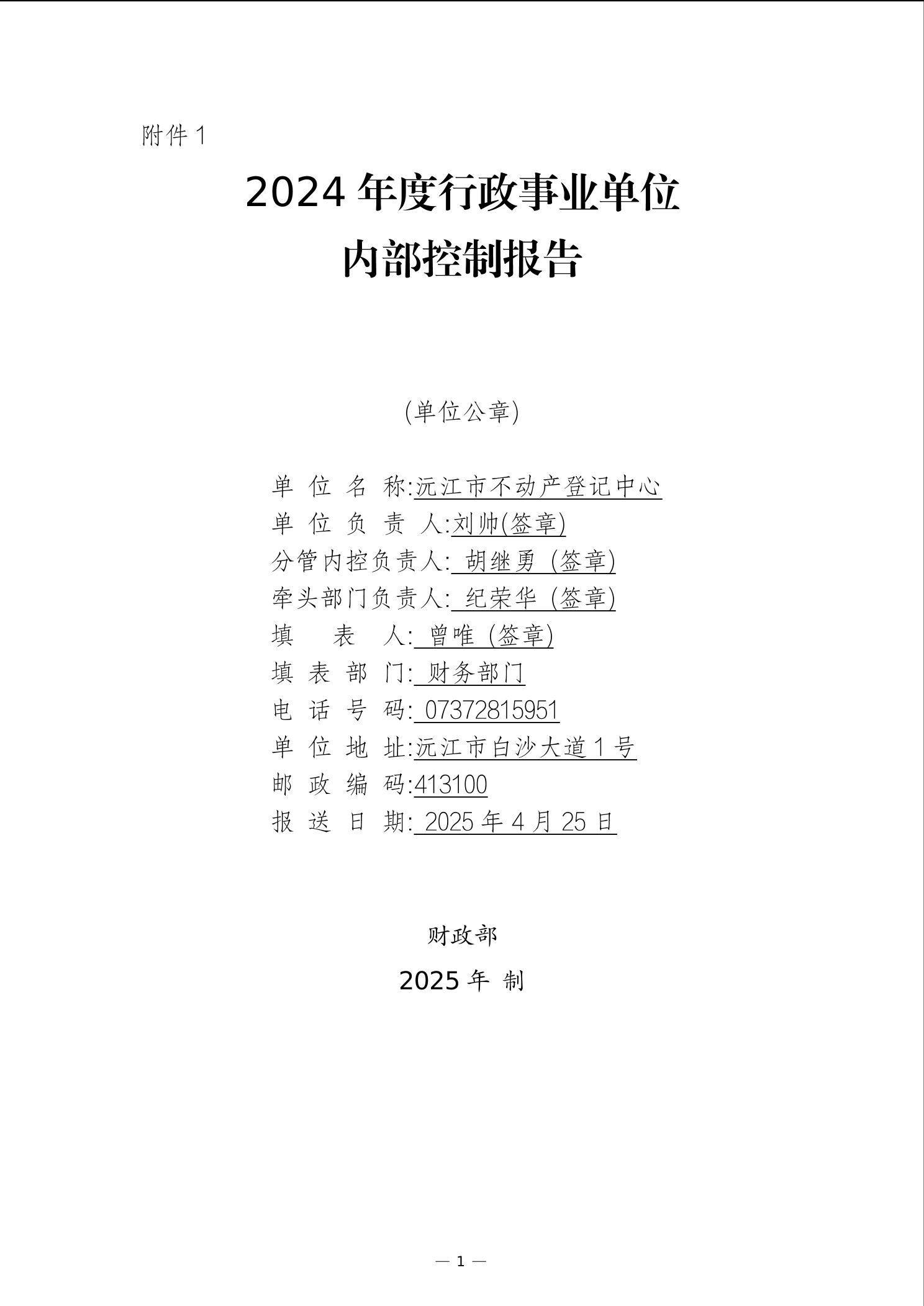 2024年度行政事業單位內部控制報告(不動產登記中心)