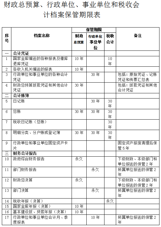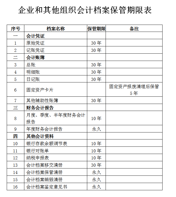 第十四條 會計檔案的保管期限分為永久、定期兩類。定期保管期限一般分為10年和30年。