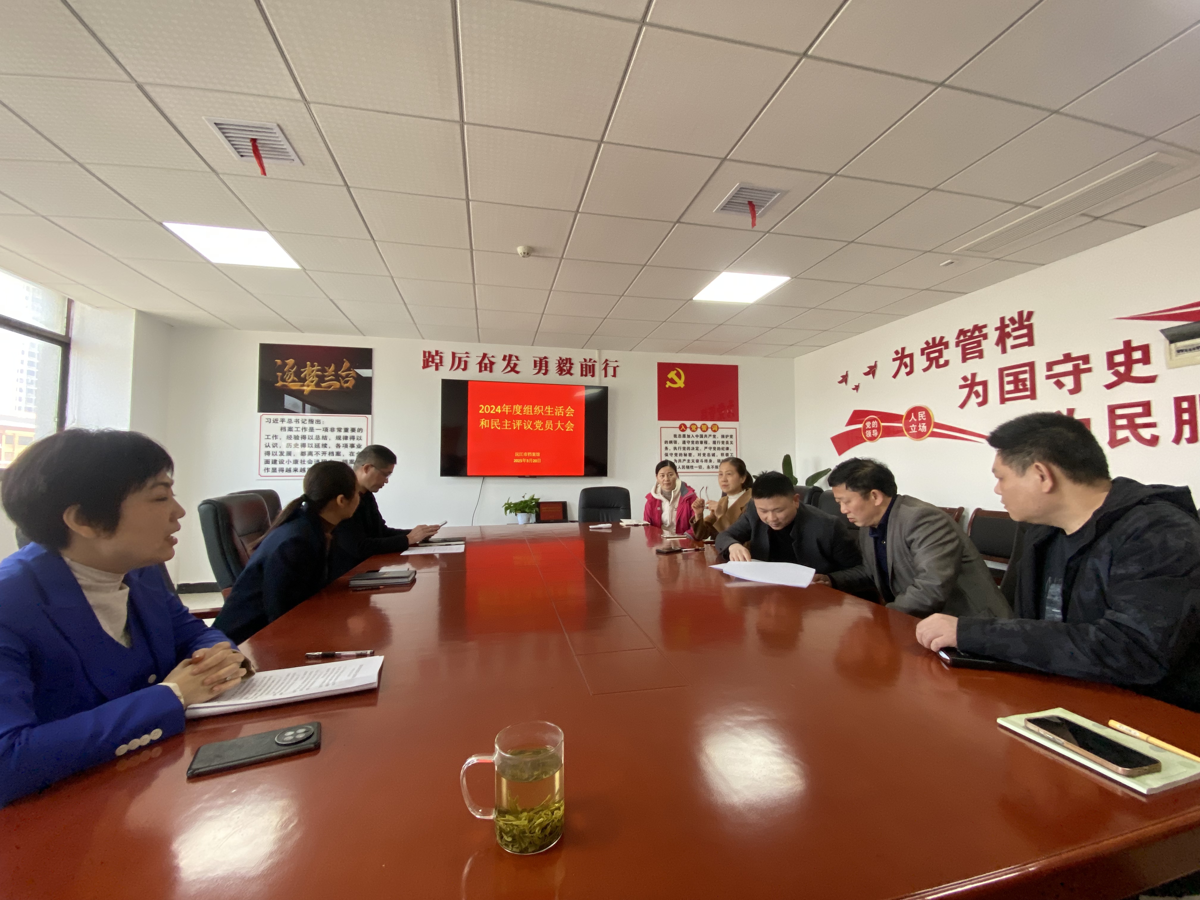 3月20日,沅江市檔案館組織全館黨員、退休黨員代表、群眾代表在機關二樓會議室召開2024年度組織生活會和民主評議黨員大會。