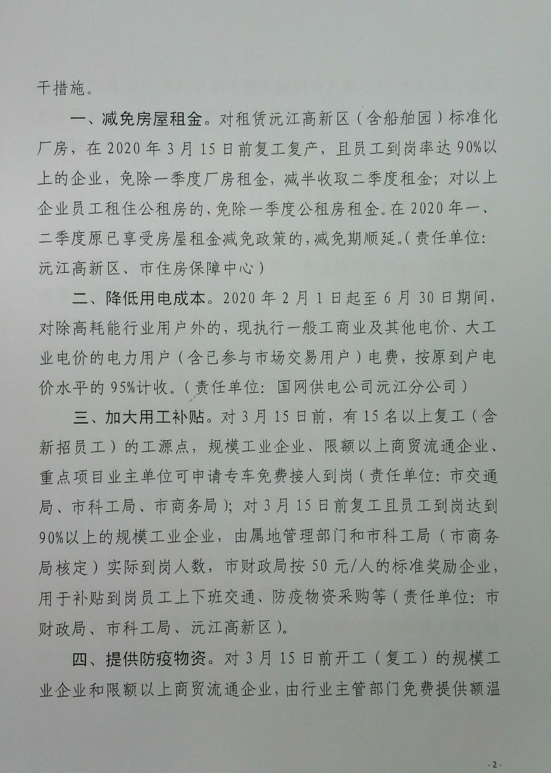 疫情防控期間支持企業(項目)復工復產若干措施