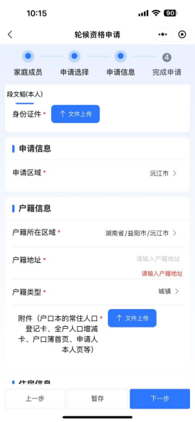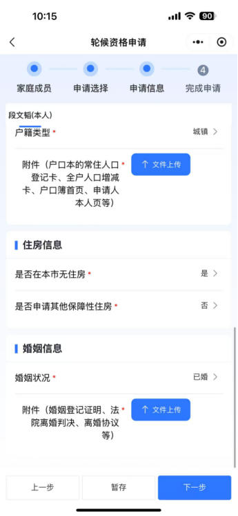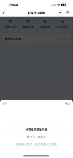 十、根據(jù)自身情況填寫:“城鎮(zhèn)住房困難家庭、新市民青年人、工薪收入群體各類引進(jìn)人才家庭”。選擇后點(diǎn)擊“下一步”。
