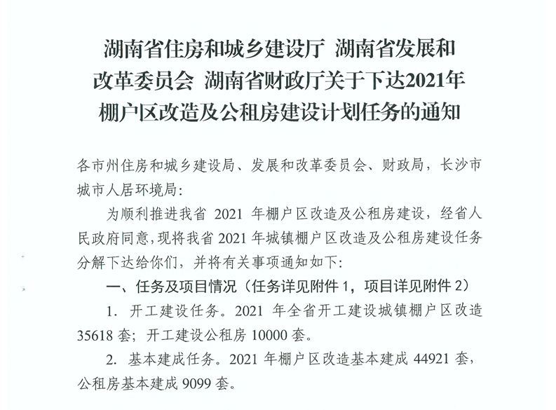 關于下達2021年棚戶區改造及公租房建設計劃任務的通知