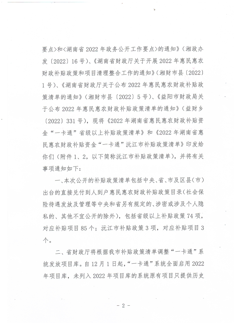 沅江市財政局關于公布2022年惠民惠農財政補貼政策清單的通知