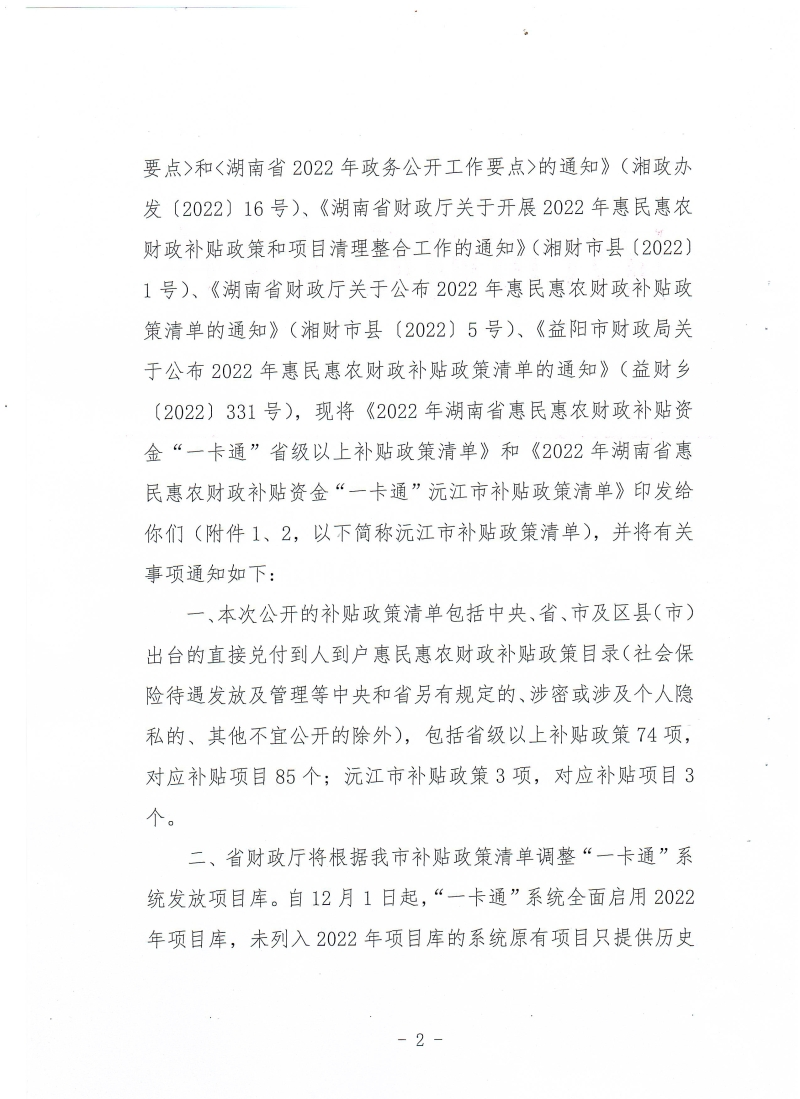 關于公布2022年惠民惠農財政補貼政策清單的通知