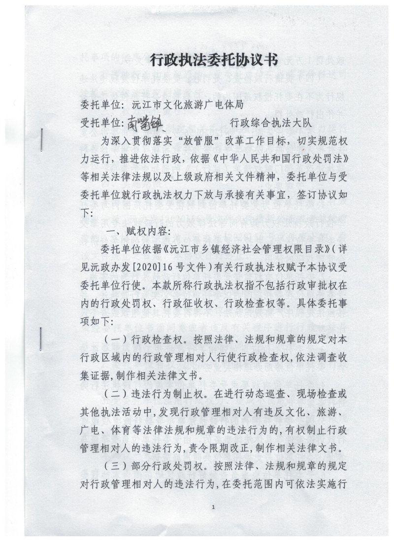 南嘴鎮與市文化旅游廣電體局簽訂《行政執法委托協議書》